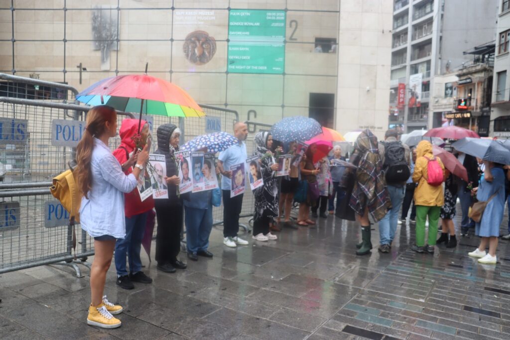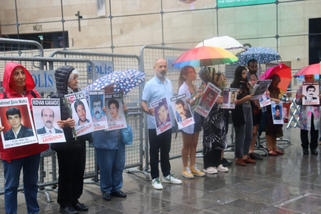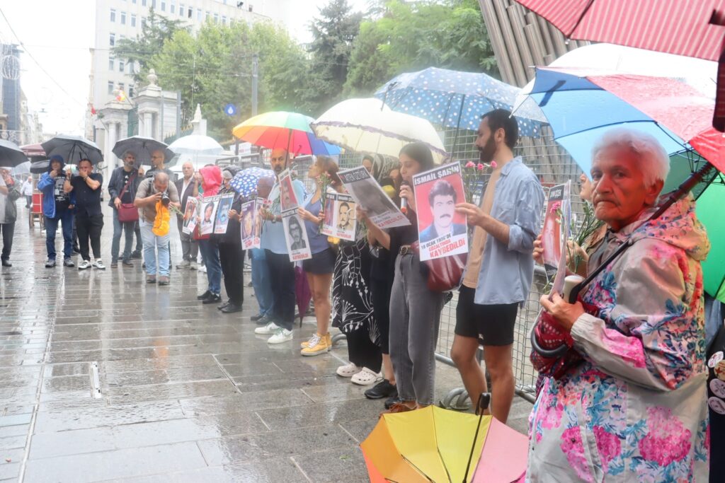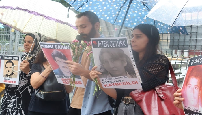 Gözaltında kaybedilen yakınlarının akıbetini soran ve faillerin yargılanması talebiyle İstanbul-Beyoğlu’nda 1995’ten bu yana eylem yapan Cumartesi Anneleri 06 Eylül 2025 Cumartesi günü Galatasaray Meydanı’na 1067. toplantısını gerçekleştirirken bundan tam 33 yıl önce 27 Temmuz 1992’te Tunceli’de gözaltına alındıktan sonra kaybedilen ve 8 Ağustos 1992’de Elazığ Karşıyaka Kartaltepe mevkiinde, bir eli dışarıda kalmış şekilde gömülü olarak bulunan Ayten Öztürk için adalet istediler.