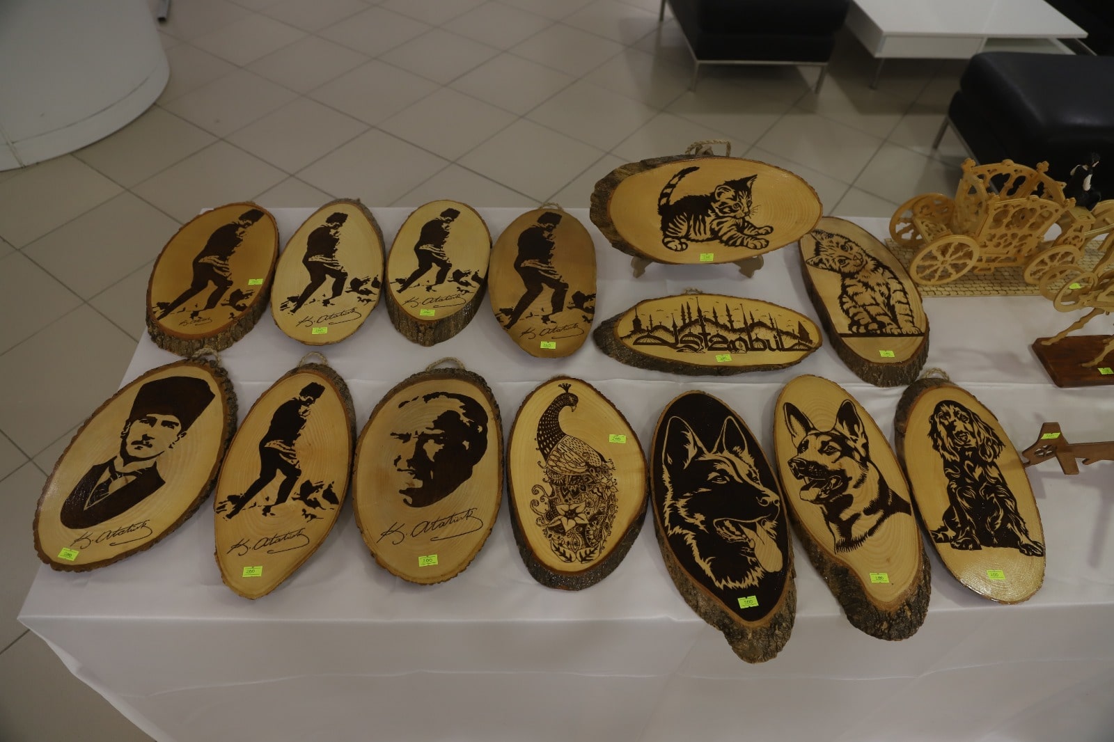 Ahşap gravür (ahşap yakma), naht sanatı (kağıt rölyef) ve filografi (tel ve çivinin aşkı) gibi değişik yöntemlerle yapılan eserler, ziyaretçilerin beğenisini topladı.