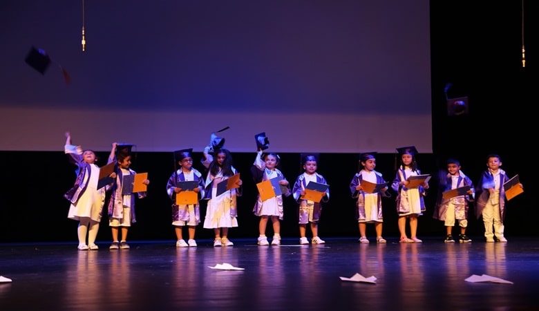 Anne – babalar da çocuklarının sahne performanslarını ve keplerini havaya atışlarını büyük bir gurur ve mutlulukla izlediler.