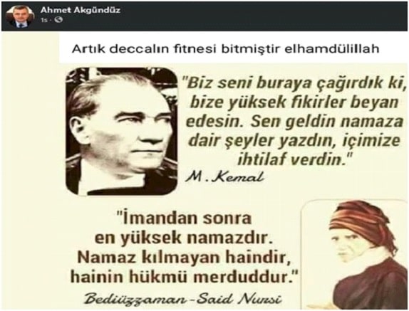 Bu kitabın yazarlarından Ahmet Akgündüz, 10 Kasım 2020 öncesinde Mustafa Kemal Atatürk’e “Artık deccalin fitnesi bitmiştir elhamdülillah” denilen ifadelerin ve Said Nursi’nin sözlerinin yer aldığı paylaşımla saldırmıştı.