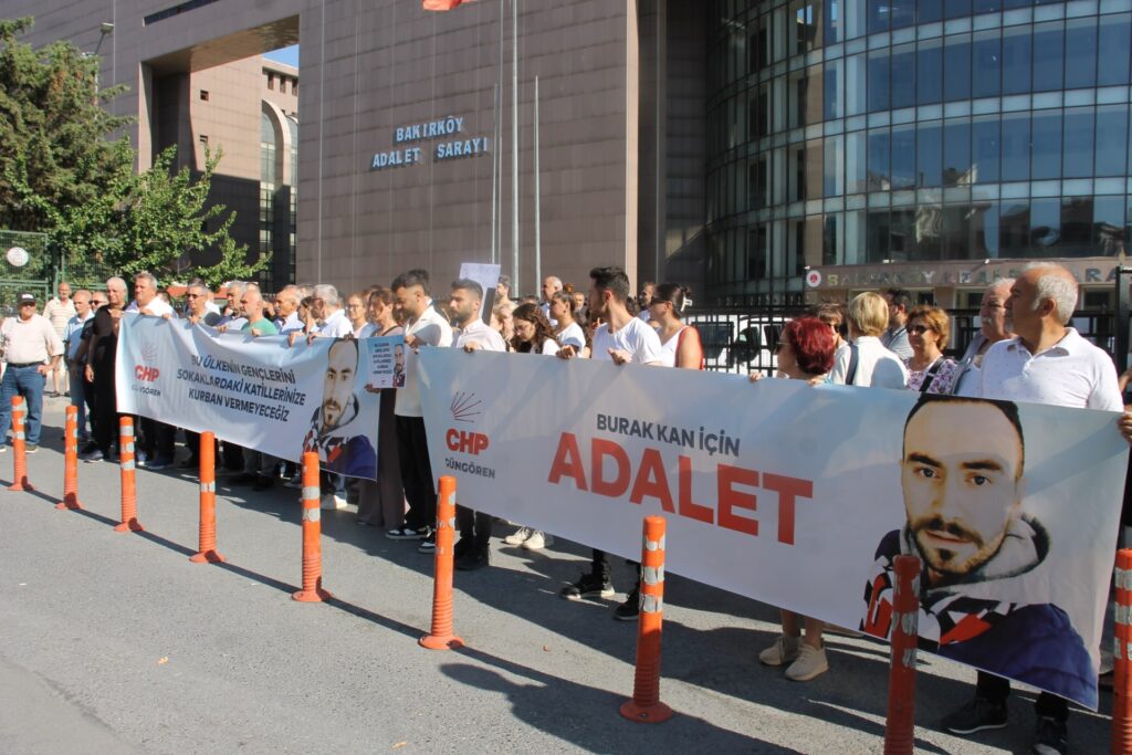 Sokak çetelerinin kahvehane baskını sırasında katledilen CHP Güngören İlçe Kadın Kolları yöneticisi Burcu Kan’ın eşi ve parti üyesi Burak Kan’ın 06 Ağustos 2024 Salı günü yapılan duruşmasında destek olmak için 06 Ağustos günü saat 09.30’da Bakırköy Adliyesi önünde buluşuldu.