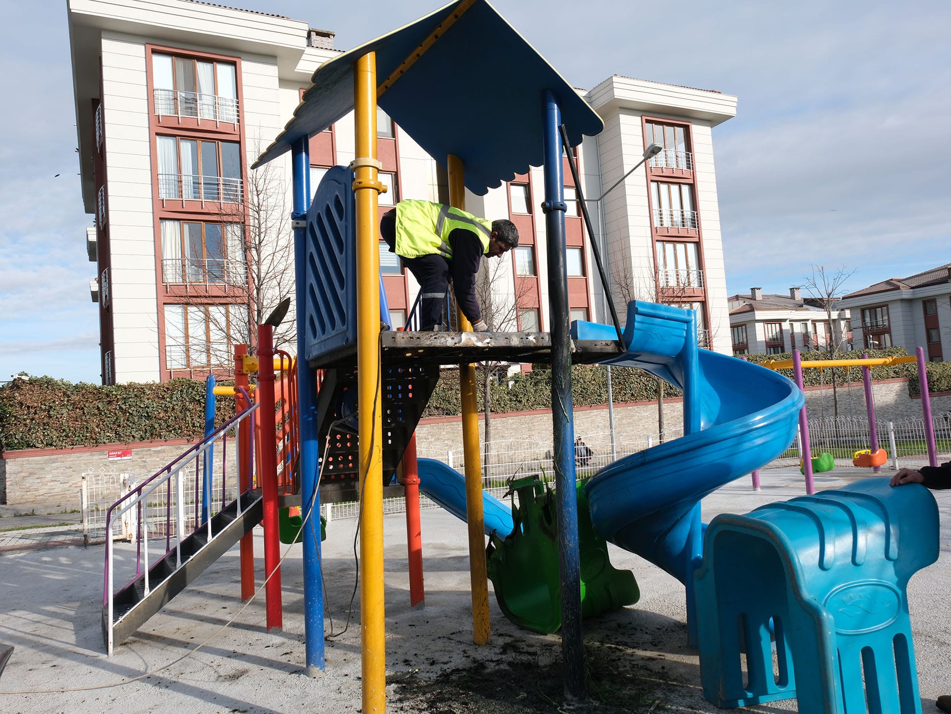 Büyükçekmece Mimarsinan Mahallesi Arafat Sokak’ta bulunan çocuk parkındaki oyun gruplarının, kimliği henüz belirlenemeyen kişi ya da kişiler tarafından yakılarak tahrip edildiği tespit edildi.