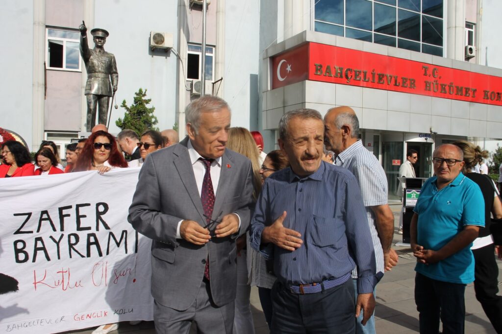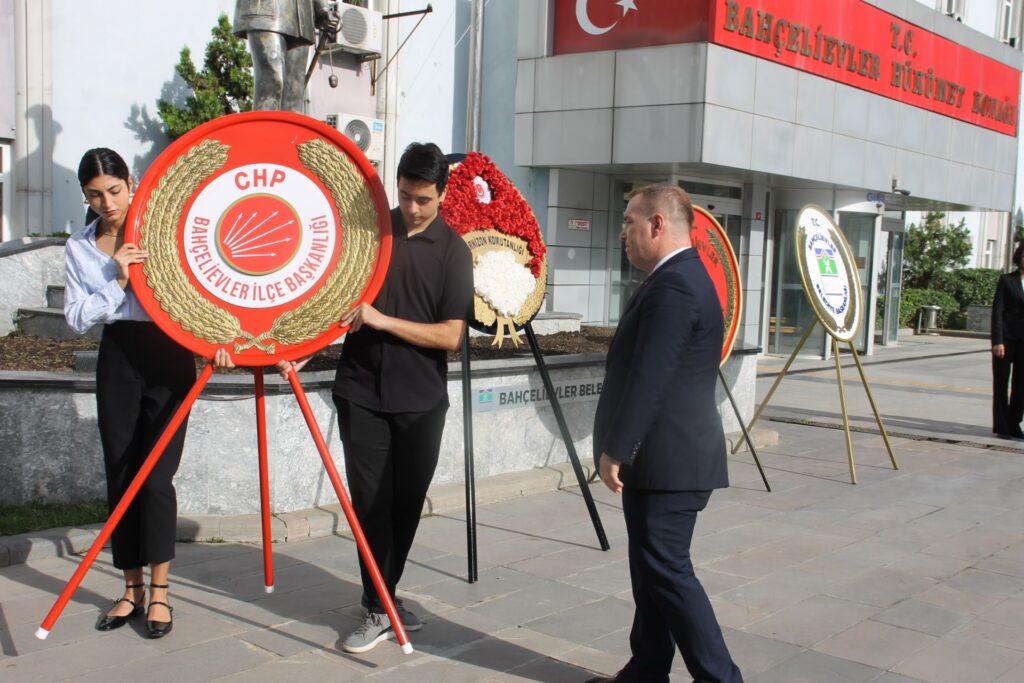 Gazi Mustafa Kemal Atatürk’ün önderliğinde, 26 Ağustos’ta başlayan ve 30 Ağustos 1922’de tarihe altın harflerle yazılan 30 Ağustos Zafer Bayramının 102. Yıl Dönümü nedeni ile Bahçelievler İlçe Başkanlığı, Bahçelievler Kaymakamlığı önünde yapılan çelenk sunum törenine CHP Bahçelievler İlçe Başkan Yardımcıları Bahçelievler CHP Belediye meclis üyelerinin de bulunduğu bir geniş katılım sağladı.