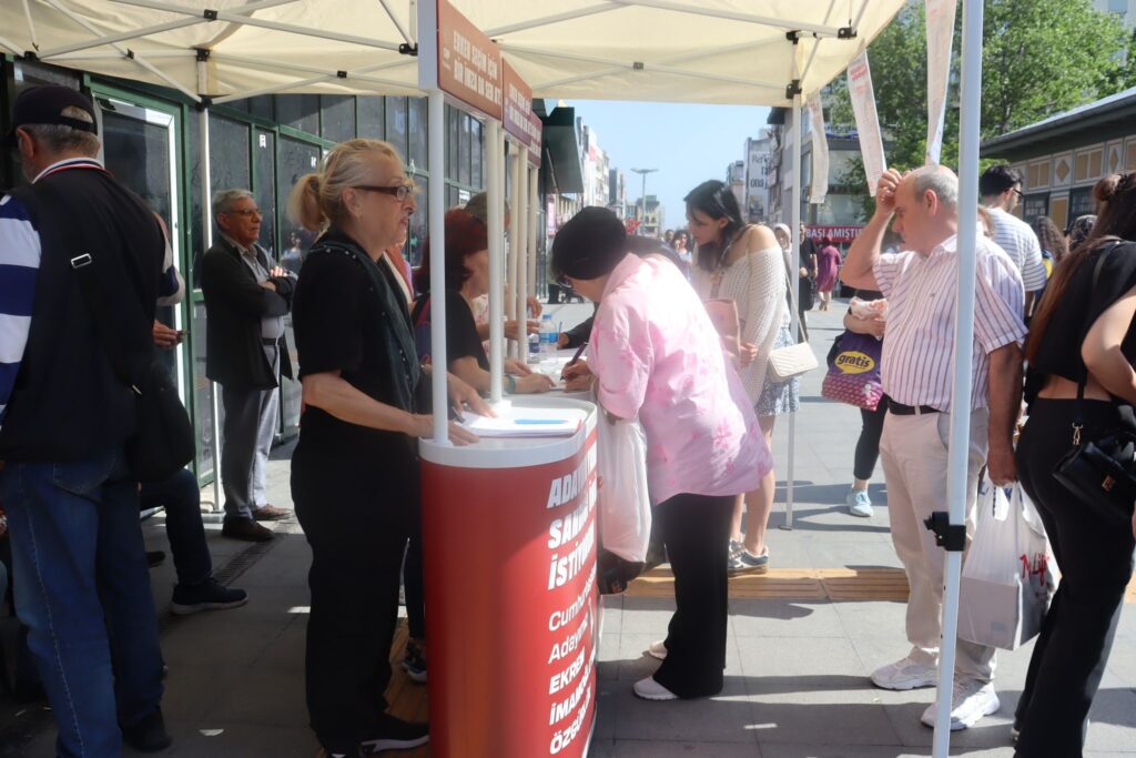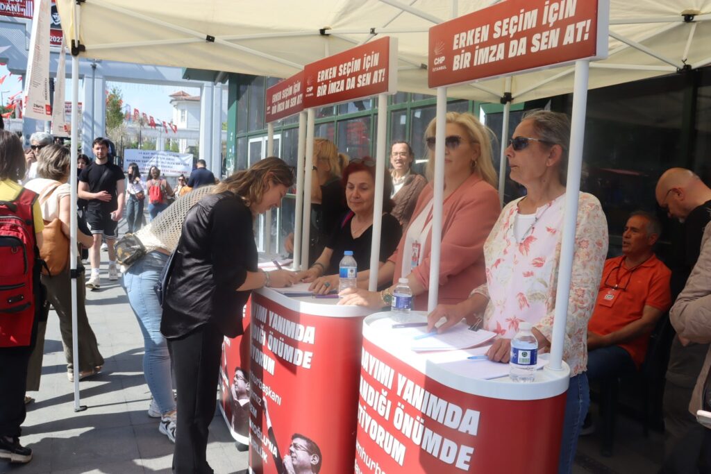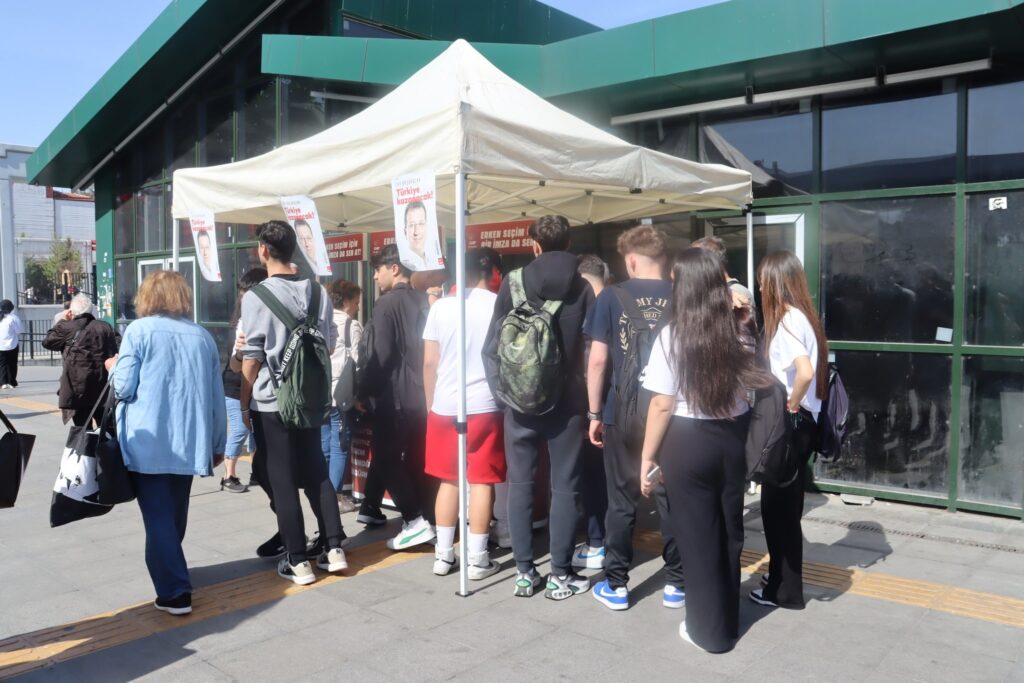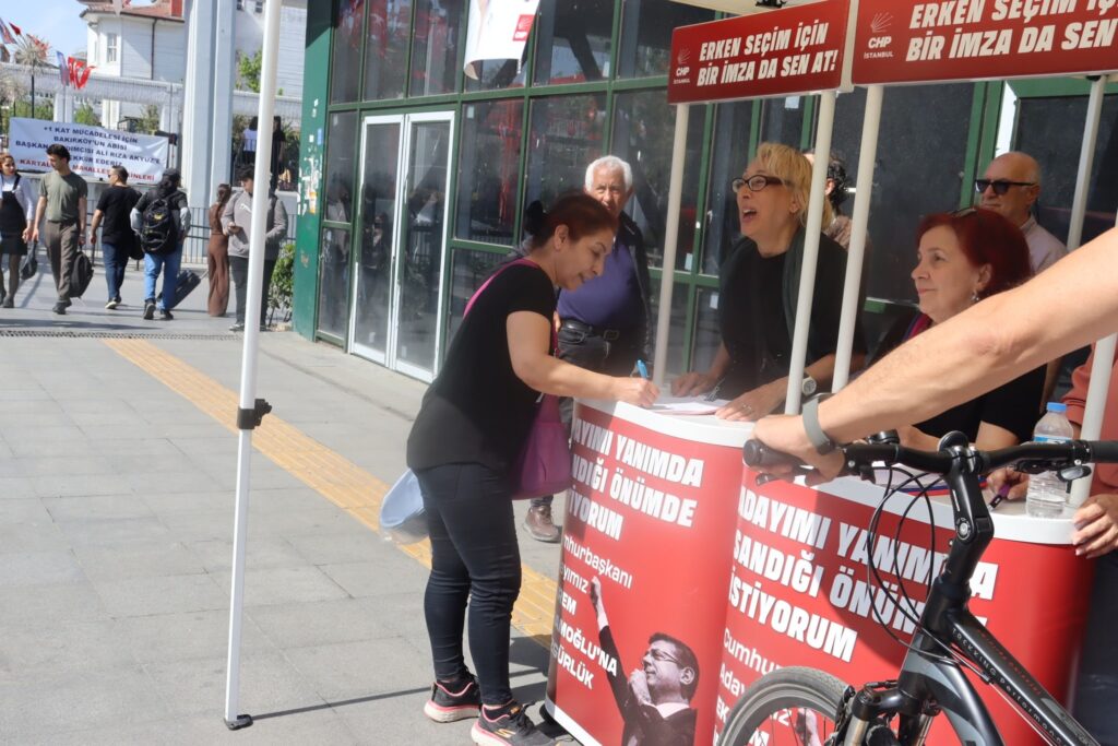 CHP’nin başlattığı erken seçimin bir an önce yapılması, hukuksuz şekilde tutuklanan Ekrem İmamoğlu’nun bir an önce bırakılması için başlattığı “adayım yanımda sandığım önümde” imza kampanyası ülke genelinde büyük ilgi karşılanırken CHP Bakırköy İlçe Başkanlığının 08 Mayıs 2025 Perşembe günü Bakırköy Marmaray İstasyonu çıkışında açtığı imza standı özellikle gençlerin adeta hücumuna uğradı.