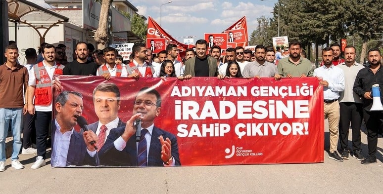 CHP Genel Başkanı Özgür Özel’in katılımıyla Adıyaman’da düzenlenen “Millet İradesine Sahip Çıkıyor” mitingi öncesinde, CHP Gençlik Kolları Genel Başkanı Cem Aydın’ın öncülüğünde geniş katılımlı bir gençlik korteji düzenlendi.