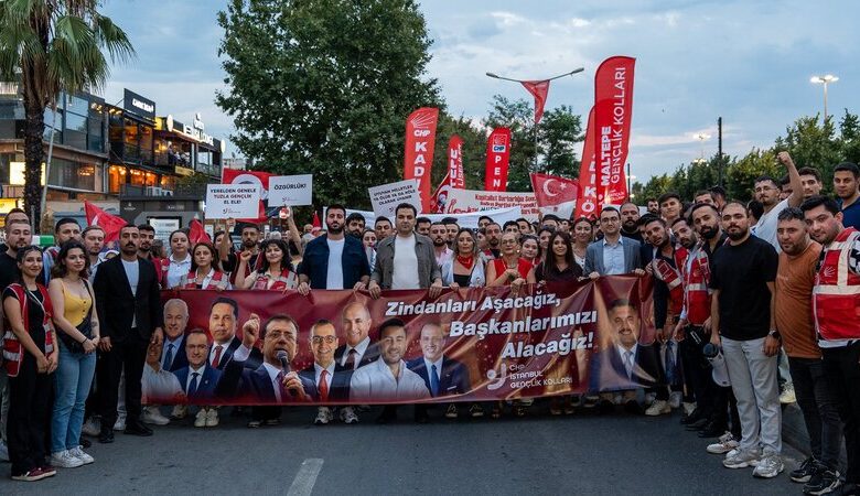 CHP Gençlik Kolları Genel Başkanı Cem Aydın’ın öncülüğünde düzenlenen kortejde, “Cumhurbaşkanı İmamoğlu” ve “diplomasız Erdoğan” sloganları öne çıktı.