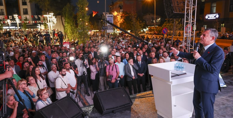 “Biz çalışırken bir yandan bize çamur atanlar, iftira atanlar, arkadaşlarımızı hapse atanlar var. Cumhuriyet Halk Partisi’nin her şeye rağmen mücadelesine… 19 Mart darbesi, ki darbeler iktidara yapılır. Bugüne kadar iktidarlara darbeler yapıldı, karşısında olduk. Ama bugünkü iktidar kendisinden sonraki iktidara, bugünkü Cumhurbaşkanı geleceğin Cumhurbaşkanı’na, Ekrem İmamoğlu’na darbeye kalkıştı. Ona direniyoruz. İşte bu direnişte; ilk başta yedi gün – yedi gece İstanbul Büyükşehir Belediyesi’nin önünde, ardından Maltepe’de, ardından bir büyükşehirde ya da bir önemli ses yükseltmemiz gereken şehirde… Kah AKP’nin geçmişte kalesi sayılan yerlerde; Bayburt’ta, Konya’da Yozgat’ta. Van’da, Mersin’de, Türkiye’nin dört bir yanında mitingler yapıyoruz. Her çarşamba akşamı da geliyoruz İstanbul’da bir büyük mitingle, bir büyük eylemle, dün Kadıköy’de olduğu gibi Türkiye’ye dostumuza güven, olmayana da kaygı vermeye devam ediyoruz. Burada bizi majestelerinin muhalefeti yapmaya… ‘Majestelerinin muhalefeti olun, iktidarı rahatsız etmeyin. Ankara’da oturun, sokağa çıkmayın, direnmeyin’ diyenlere baş eğmiyoruz. Baş eğmediğimiz için başımızı ezmeye çalışıyorlar. Ama işte bu mücadelenin en önemli kalelerinden biri; İstanbul İl Başkanlığı’dır. İşte benim burada yanımda seçilmiş İl Başkanı Özgür Çelik var. Sarayın kayyımına teslim etmiyoruz İstanbul’u. Çünkü biz demokrasi fikrinin insanlarıyız. Demokrasi fikri, tek adamı reddeder. Türkiye’ye bu fikri taşıyan Gazi Mustafa Kemal Atatürk’tür. En güçlü olduğu zamanda, padişahlığı reddeden, krallığı reddeden, Amerikan tipi başkanlığa yeltenmeyen, Meclis kuran Gazi Mustafa Kemal Atatürk’ün partisiyiz biz. O parti sandığı getirdi. İsmet Paşa kaybettiği seçime ‘En büyük yenilgim. Demokrasinin zaferi’ dedi. Biz 14 Mayıs 1950 günü kaybettiğimiz seçimle iktidarı Demokrat Parti’ye verirken, Türkiye’de iktidarların seçim yoluyla değişmesini Türkiye’ye kazandırdık.”