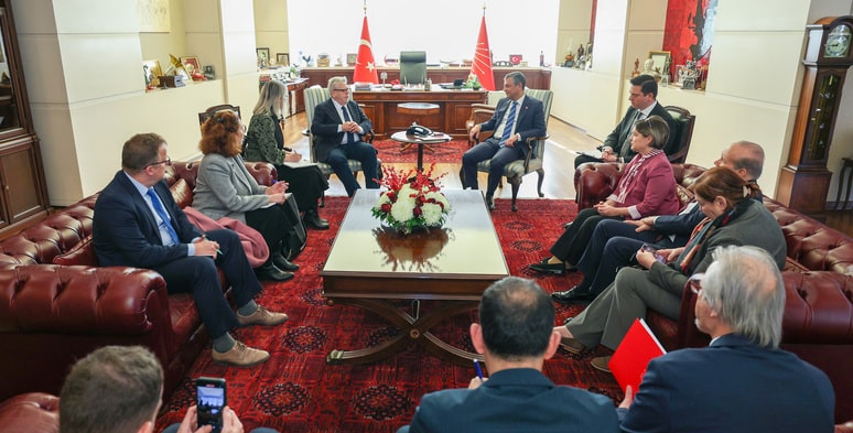 Cumhuriyet Halk Partisi Genel Başkanı Özgür Özel, Avrupa Parlamentosu Türkiye Raportörü Nacho Sanchez Amor ve beraberindeki heyet ile CHP Genel Merkezi’ndeki makamında bir araya geldi.