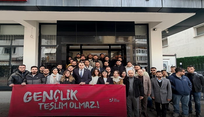 CHP İzmir İl Gençlik Kolları, ülke genelinde eş zamanlı olarak düzenlenen basın açıklamaları kapsamında, Gençlik Kolları Genel Başkanı Cem Aydın’a Genel Başkan Özgür Özel’in sözlerinin yer aldığı bir videoyu sosyal medyada paylaştığı için hapis cezası verilmesine ve Adalar Gençlik Kolları Başkanı Ramazan Yıldız’ın bir sosyal medya paylaşımı gerekçe gösterilerek gözaltına alınıp tutuklanmasına İzmir İl Başkanlığı önünde tepki gösterdi.