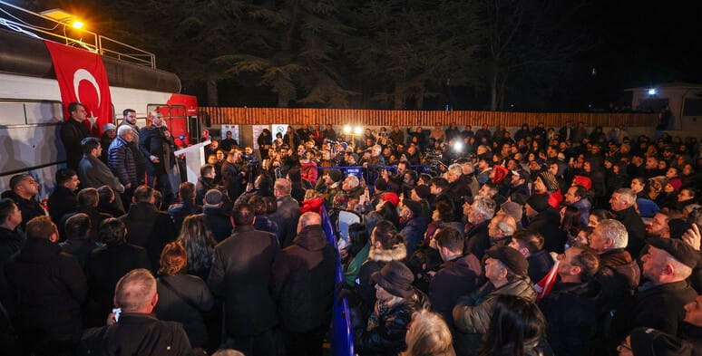 Cumhuriyet Halk Partisi Genel Başkanı Özgür Özel, Bolu Belediye Başkanı Tanju Özcan’ın aralarında olduğu 13 kişinin gözaltına alınması üzerine şehre gelerek Bolu İl Jandarma Komutanlığı’ndan bilgi aldı ve ardından buradaki vatandaşlara seslendi. Cumhuriyet Halk Partisi Lideri Özel, buradaki konuşmasında, “Değerli arkadaşlar, hepimize iyi akşamlar. Buraya seçtiğiniz belediye başkanınıza, seçme hakkınıza, seçilmişinize, iradenize sahip çıktığınız için öncelikle her birinize çok teşekkür ediyorum, iyi ki varsınız. Bugün sabah saat 6.30 – 7.00 gibi kalkıp Antalya’ya, Muhittin Böcek Başkanı görmeye ve oradan Burdur’a mitinge, oradan da Isparta‘dan uçakla İstanbul’da bir iftar programına gitmek üzere harekete geçtik. O sırada bu kötü haberi aldık” dedi. Özel, şöyle devam etti:
