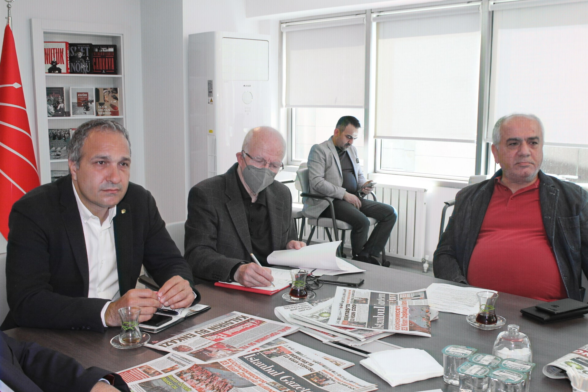 CHP Üsküdar İlçe Başkanlık Binasında saat 10.30’de başlayan toplantı CHP Üsküdar İlçe Başkanı Suat Özçağdaş’ın konuşması ile başlarken daha sonra CHP’li Meclis Üyeleri Üsküdar Belediyesini Mayıs Ayı Toplantılarında gündem maddeleri hakkında CHP grubu olarak aldıkları kararların gerekçelerini ve eleştirilerini gazete yetkililerinle paylaştılar.