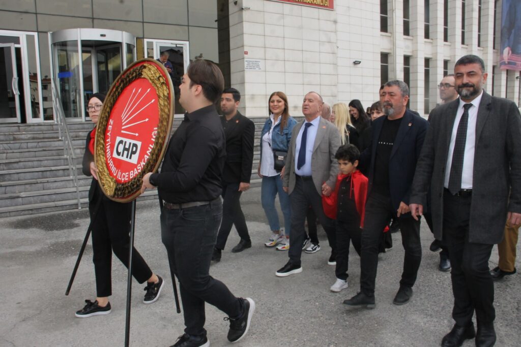 TBMM’nin açılışı nedeni ile ebedi önderimiz Mustafa Kemal Atatürk tarafından Türk Gençliğine armağan edilen 23 Nisan Ulusal Egemenlik ve Çocuk Bayramının 104. yıl dönümü nedeni ile Zeytinburnu Kaymakamlık Binası önündeki Atatürk büstünün olduğu tören alanında yapılan çelenk koyma töreninde CHP Zeytinburnu İlçe Başkanı Metin Doğan tarafından CHP Çelengi bırakıldı. Doğan, “Mustafa Kemal Atatürk meclisi kurarak ülkenin yönetimini ulusa devretmiştir.” dedi.