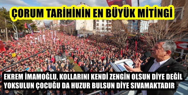 “Ben bir bahçıvanın torunuyum. Emekli öğretmenlerin çocuğuyum. Benim amacım bu ülkede yoksulların evlatlarının hayata farkı kapatamayacakları kadar geriden başlamamasıdır. Eğitimde fırsat eşitliğidir. Çocuğun yatağı aç girmemesi, okulu aç gitmemesidir. Okulda çocuğun birinin beslenme çantasında muz, mandalina çıkarken diğerinin kuru ekmeğe bakmamasıdır. Zenginin çocuğu kana kana su içerken yoksulun çocuğunun tuvalet çeşmesine ağzını dayamamasıdır. İşte bu yüzden bizim yürüyüşümüz sarayda oturmanın değil, milleti refaha kavuşturmanın yürüyüşüdür. Ekrem İmamoğlu kolları kendi zengin olsun diye değil, yoksulun çocuğu da huzur bulsun diye sıvamaktadır. Bunun için Cumhuriyet Halk Partisi’nin bir an önce erken seçim talebi vardır. Karşımızda kendisine ve yaşına bir şey demem ama şunu hatırlatırım. Sayın Erdoğan ben yaştaydı. O gün de Necmettin Erbakan, 70 yaşındaydı. Ona diyordu ki kendi sesi var, ‘Yaş 70, iş bitmiş’ diyordu Erbakan için. O gün Ecevit 74 yaşındaydı. Ecevit hastalandığında ona şifa dilemek yerine diyordu ki ‘Bırak be adam, ne zaman bırakacaksın, o ölünce mi bırakacaksın?’ Bizim siyasetimizde yaşla dalga geçmek yok. Bizim siyasetimizde başbakan yürüyemiyorsa, ayağı sürtüyorsa onunla alay etmek yok. Bizim siyasetimizde yaşa da makama da saygı var. Ama bu ülkede bu iktidardan yılmış 10 milyonlar var. Yoksullar, işçiler, emekçiler ve emekliler var. Bunun için Erdoğan’a söylüyorum. İktidarınız tükenmiştir. Enerjiniz kalmamıştır. Bu ülkeye umut olamıyorsunuz. Bunun için daha fazla kaçmadan seçim sandığını getirip bakın, Çorum ne söylüyor? ‘Ey Erdoğan, adayı bırak, sandığı getir. Adayımı yanımda, sandığı önümde istiyorum.’ Hodri meydan. Çorum’dan yükselen bu ses… Artık kimse Erdoğan’dan da onun iktidarından da ne zam ne de kendisinin sesini duymasını bekliyor. Erdoğan’dan istenen şey artık zam değil, sandıktır. Sandığı istiyor musunuz? Bakın bu sandığı kaybedeceklerini bildikleri için sandıktan kaçıyorlar.”