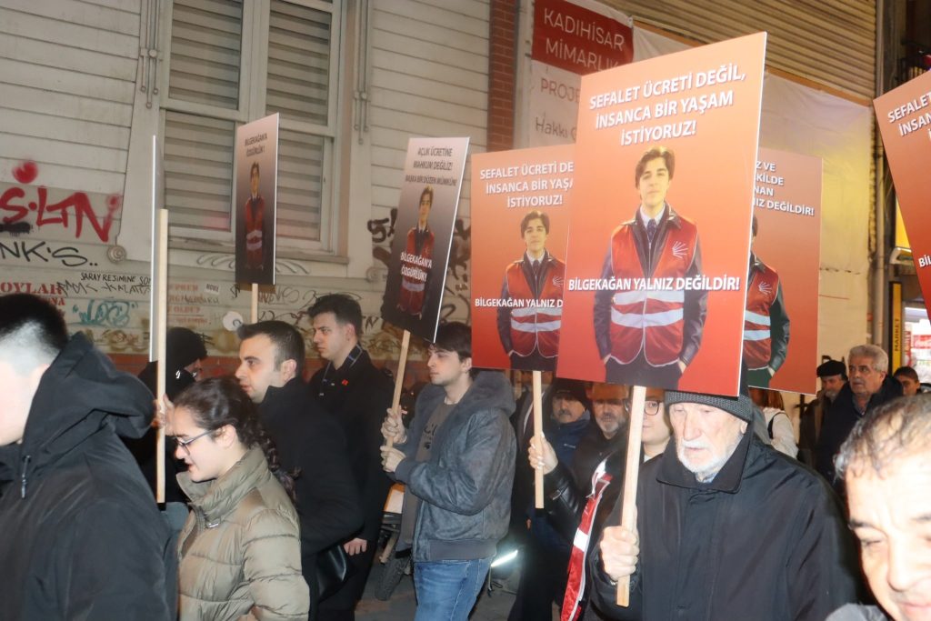 “Bilgekağan nerede, kim için mücadele etti? Partisi için, kendisi için, ailesi için değil. Açlık sınırının altında yaşayan milyonlarca işçi için burada mücadele etti. Utanmaz, artık yargının geldiği vicdanını yitirmiş bazı yargı mensupları bu kararı verdi. Şimdi arkamda babası Ercan Bey var. Bu kararı veren hakime sesleniyorum; alt sınırı 1 yıl olan bir cezadan dolayı Bilgekağan’ı tutuklarken hiç o babanın yerine kendini koydun mu? Bir yılın yatarı yok ama toplumu susturmak, sindirmek için bunu yapıyorlar. CHP Gençlik Kollarımızdan korkmasınlar ama onlardan çekinsinler. Onlar çünkü bitmez, tükenmez, bu meydanları bırakmaz. Üzüldüğüm nokta şu. Aslında bu kararı veren hakimler için de memurlar için de mücadele veriyoruz. Ezilen tüm bireyler için mücadele veriyoruz ama ne yazık ki Gebze’de sigortasız çalışan o çocuklar, evlatlarımız, onların hesabını veremeyen bakanlar Meclis’te karşımızda konuşurken Bilgekağan tutuklanmamalıydı. Bir kez daha söylüyorum.