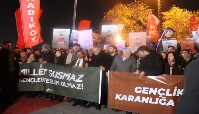 CHP Kadıköy Gençlik Kolları Yöneticisi Bilgekağan Şarbat’ın tutuklanmasına karşı CHP’liler, İskele Meydanı’nda eylem yaptı. CHP Grup Başkanvekili Ali Mahir Başarır, “Bilgekağan, açlık sınırının altında yaşayan milyonlarca işçi için burada mücadele etti. Utanmaz, artık yargının geldiği vicdanını yitirmiş bazı yargı mensupları bu kararı verdi. Şimdi arkamda babası Ercan Bey var. Bu kararı veren hakime sesleniyorum; alt sınırı 1 yıl olan bir cezadan dolayı Bilgekağan’ı tutuklarken hiç o babanın yerine kendini koydun mu? Bir yılın yatarı yok ama toplumu susturmak, sindirmek için bunu yapıyorlar” dedi.