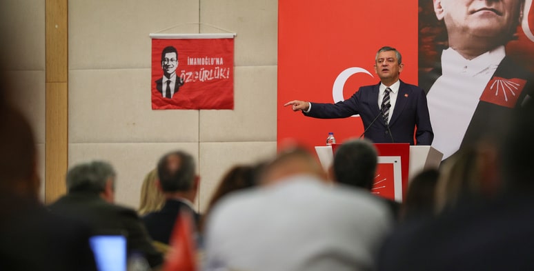 “Bugün Esenyurt, Şişli, Ovacık belediyelerimizde kayyım vardır. DEM Parti’nin Van, Mardin, Hakkari, Batman, Siirt, Tunceli, Halfeti, Bahçesaray, Akdeniz, Kağızman belediyelerinde kayyım vardır. Toplamda 13 belediyede milyonlarca seçmenin seçtikleri yerine Tayyip Erdoğan’ın atadıkları belediyeleri yönetmektedir. Cumhuriyet Halk Partisi’nin belediye başkanları, üçü büyükşehir belediye başkanı olmak üzere; Adana, Antalya, İstanbul Büyükşehir Belediye başkanları hapistedir. İçerideki belediye başkanlarımızdan Mehmet Murat Çalık bir hastane raporuna rağmen, o rapora itiraz edip ‘Bu hastaneden alacaksın’ deyip baskılanan hastanenin vermediği rapora, öncekinin dört başı mamur ‘Tahliye edilmelidir’ raporuna rağmen içeride tutulmaktadır. Muhittin Böcek günde 14 ilaç içerek bir hapishane hücresinde, haftada bir hayati tehlike geçirerek, bütün izahatlarımıza, bütün doğru yollardan anlatmaya çalışmamıza rağmen; hasta arkadaşlarımız ve sadece Cumhuriyet Halk Partililer değil, bütün hasta tutuklular ve hükümlüler adeta birilerinin gönlü olana kadar ama onların gönlü olana kadar belki de hayatlarını kaybetme riskiyle cezaevlerinde tutulmaktadır. Bir yandan da Cumhuriyet Halk Partili belediyelere ‘Ya hapse atıl, ya da akıllı ol AK Parti‘ye katıl’ diye olabilecek en ahlaksız teklifler yapılmakta, en ahlaksız şantajlar yapılmakta. Bundan korkup kaçanlar AK Parti‘ye katılmakta. Ama bu teklifin yapılmasına karşı karşısındakinin yüzüne acı bir tebessümle bakanlar, sonra da eve gidip eşine ‘Sıra bize geliyor. Hakkınızı helal edin, çocuklar size emanet. Biz valizimizi yapalım, kapının arkasına koyalım. Abdestinden şüphesi olmayanın namazından şüphesi olmaz. Ama benim de bu şantaja pabuç bırakacak birisi olmadığımı görecekler’ diyenler cezaevlerine gidip yatmaktadırlar. Bu sözleri tutuklanmasından üç gün önce ve üç gün sonra, önce telefonda ve sonra cezaevindeki görüşme odasında duymuş bir Genel Başkan olarak söylüyorum. Bunun için bu zorlu süreçte kendisini, ailesini feda edip, partisine olan gönül bağını ve kendisine olan özgüvenini gösteren bütün arkadaşlarımın şimdi her biri 12 metrekarelik hücrelerden izliyorlar. Teker teker alınlarından öpüyorum.”