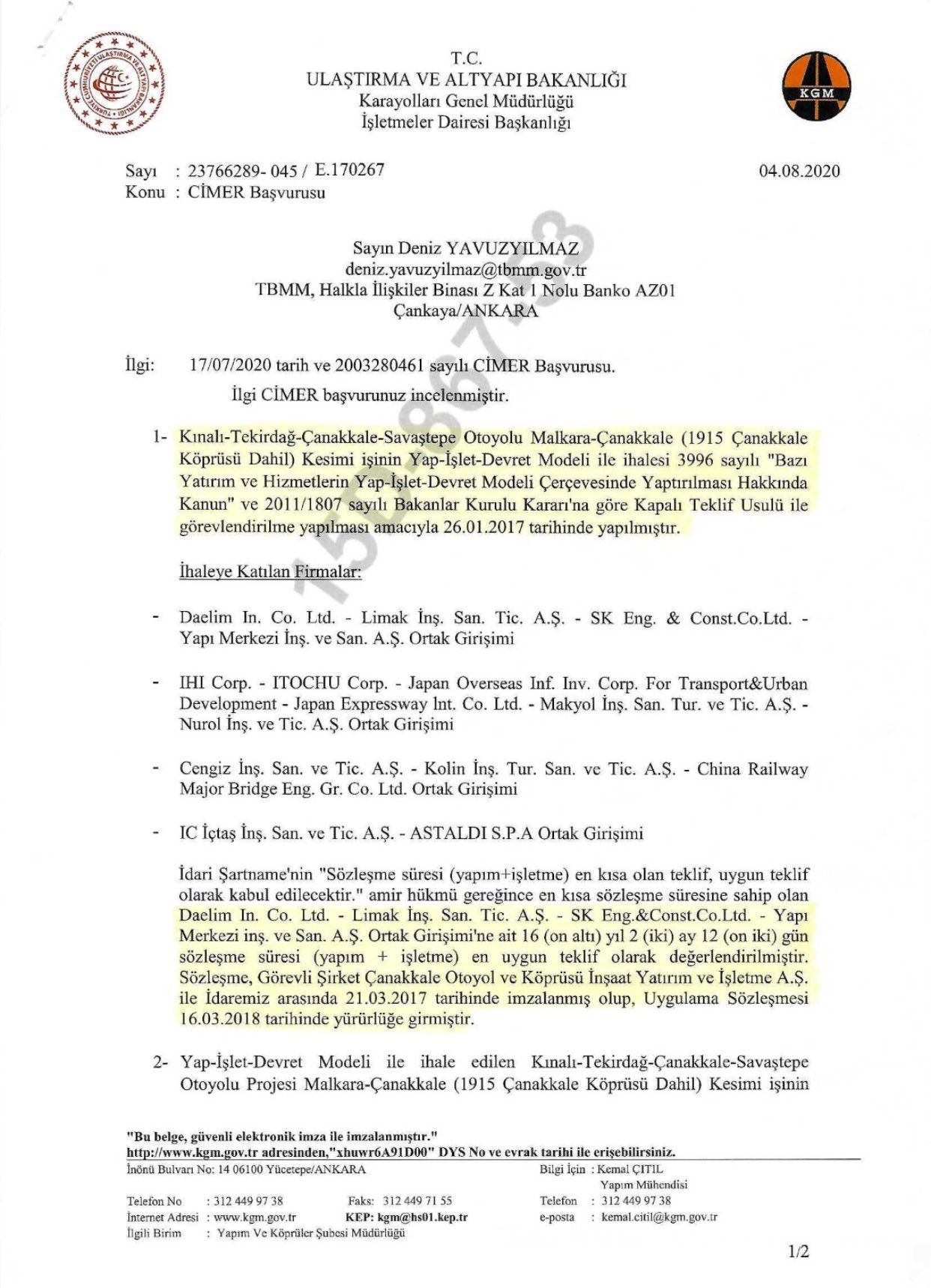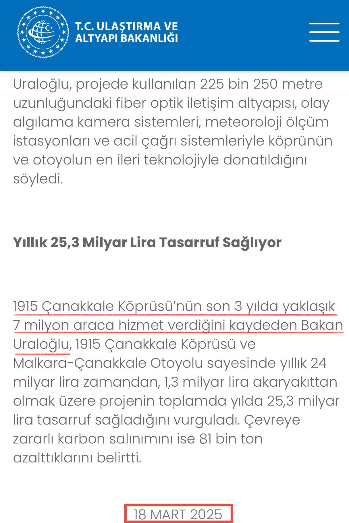 CHP Genel Başkan Yardımcısı Deniz Yavuzyılmaz, sosyal medya hesabından Çanakkale Köprüsü’nün garanti geçiş sayısına ilişkin açıklama yaptı.