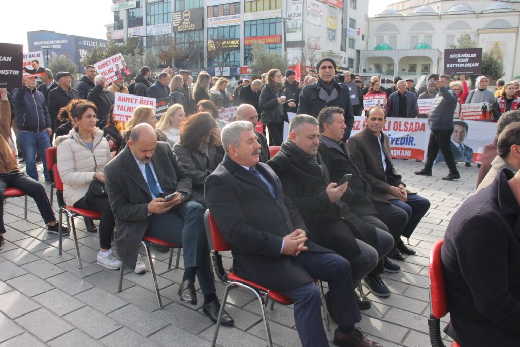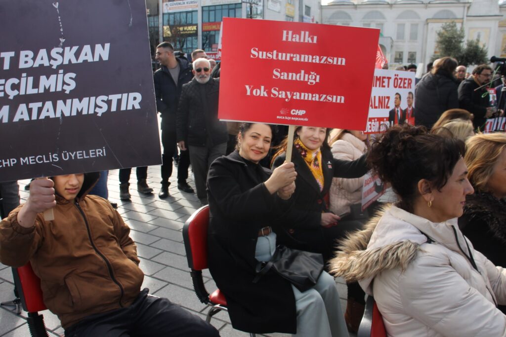 Esenyurt Meydanındaki Adalet Nöbetlerinin çoban ateşini yakan CHP Esenyurt Belediye Meclis Üyeleri belediye önünde başlattıkları oturma eylemleri sonrası başkanlık binasındaki grup odalarına girmeyi başardıkları halde hukuksuzluğun başı olan kayyum hukuken yapmak zorunda olduğu meclis toplantılarına CHP Meclis Üyelerini davet etmeyerek ileride kendisi için cezai sonuçlar doğuracak uygulamaları nedeni ile CHP Meclis Grubu 05 Aralık 2024 Perşembe günü grup toplantısını sembolik olarak Esenyurt Meydanında halka açık olarak düzenledi.