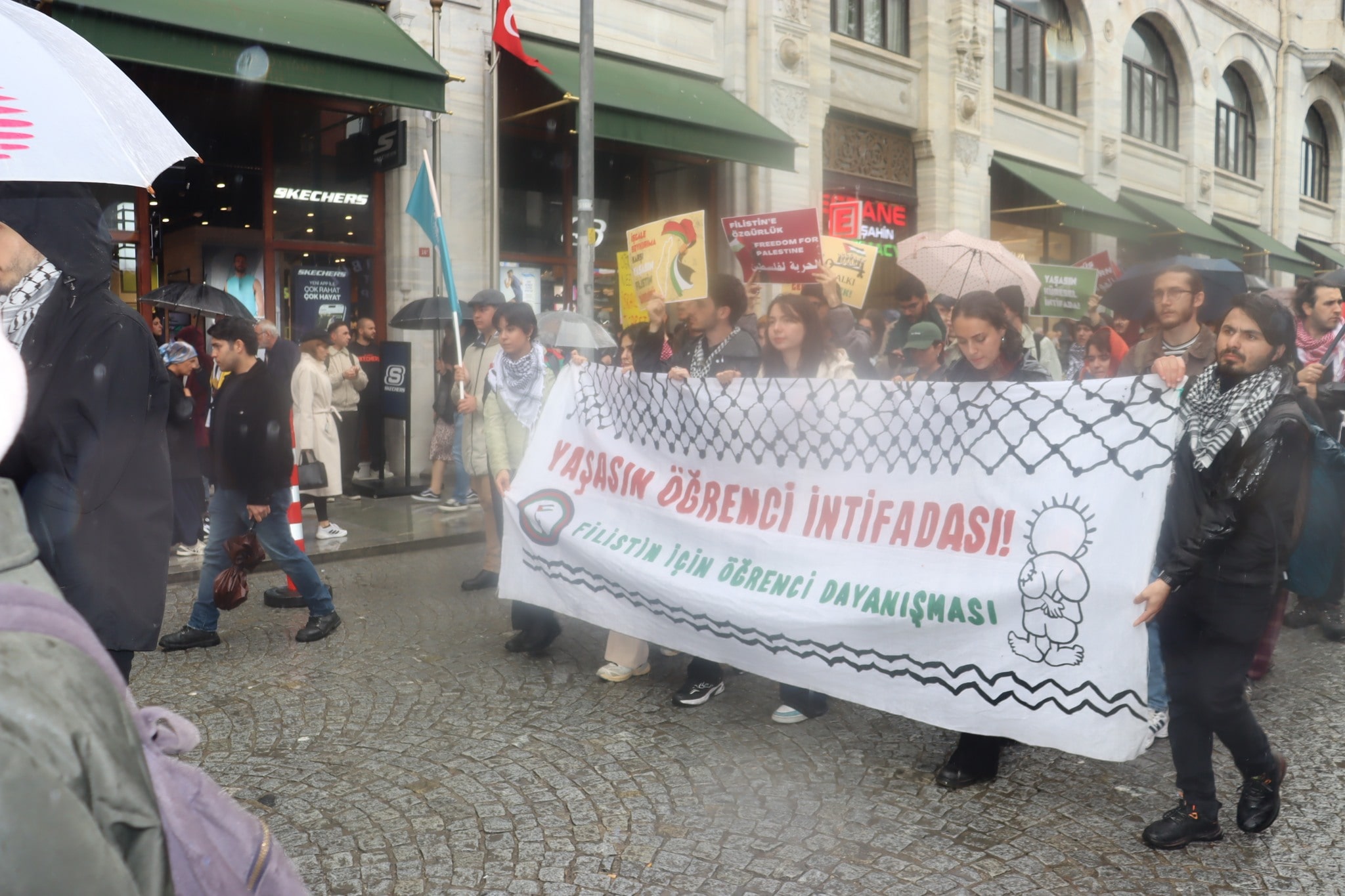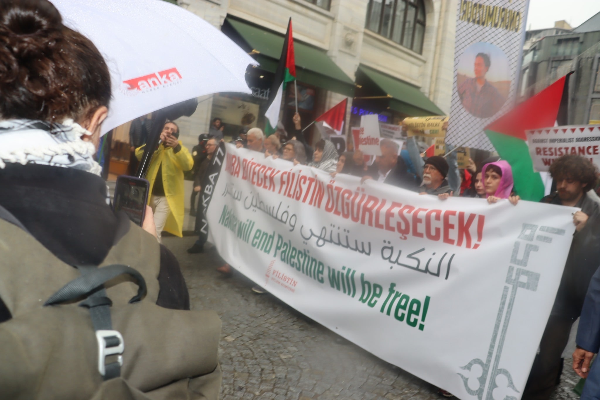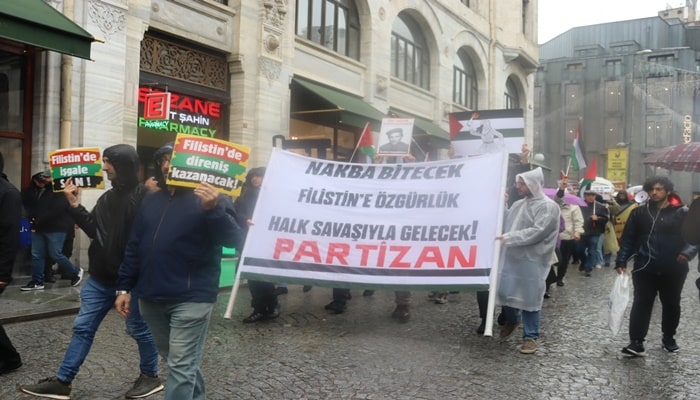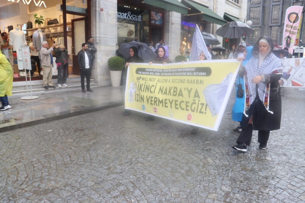 Filistinlilerin şiddet kullanılarak yerlerinden edilmeleri ve mülksüzleştirilmeleri ve toplumlarının, Filistin kültürünün, kimliklerinin, siyasi haklarının ve ulusal isteklerinin yok edilmesi olan Nakba’nın 77. Yıl Dönümü nedeni ile Filistin eylem Komitesi tarafından İstanbul’da düzenlenen yürüyüş Eminönü’nde sonlandı.