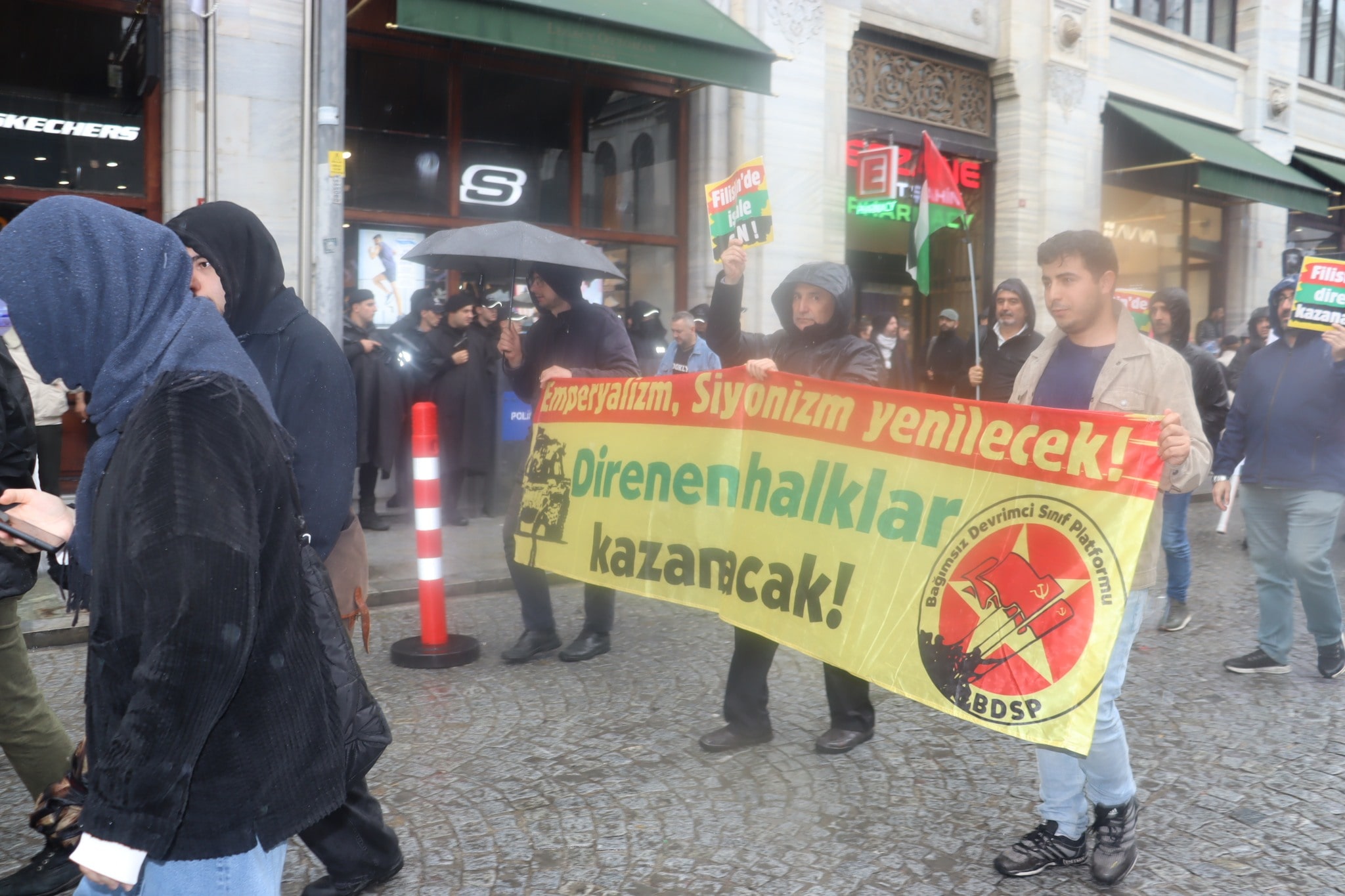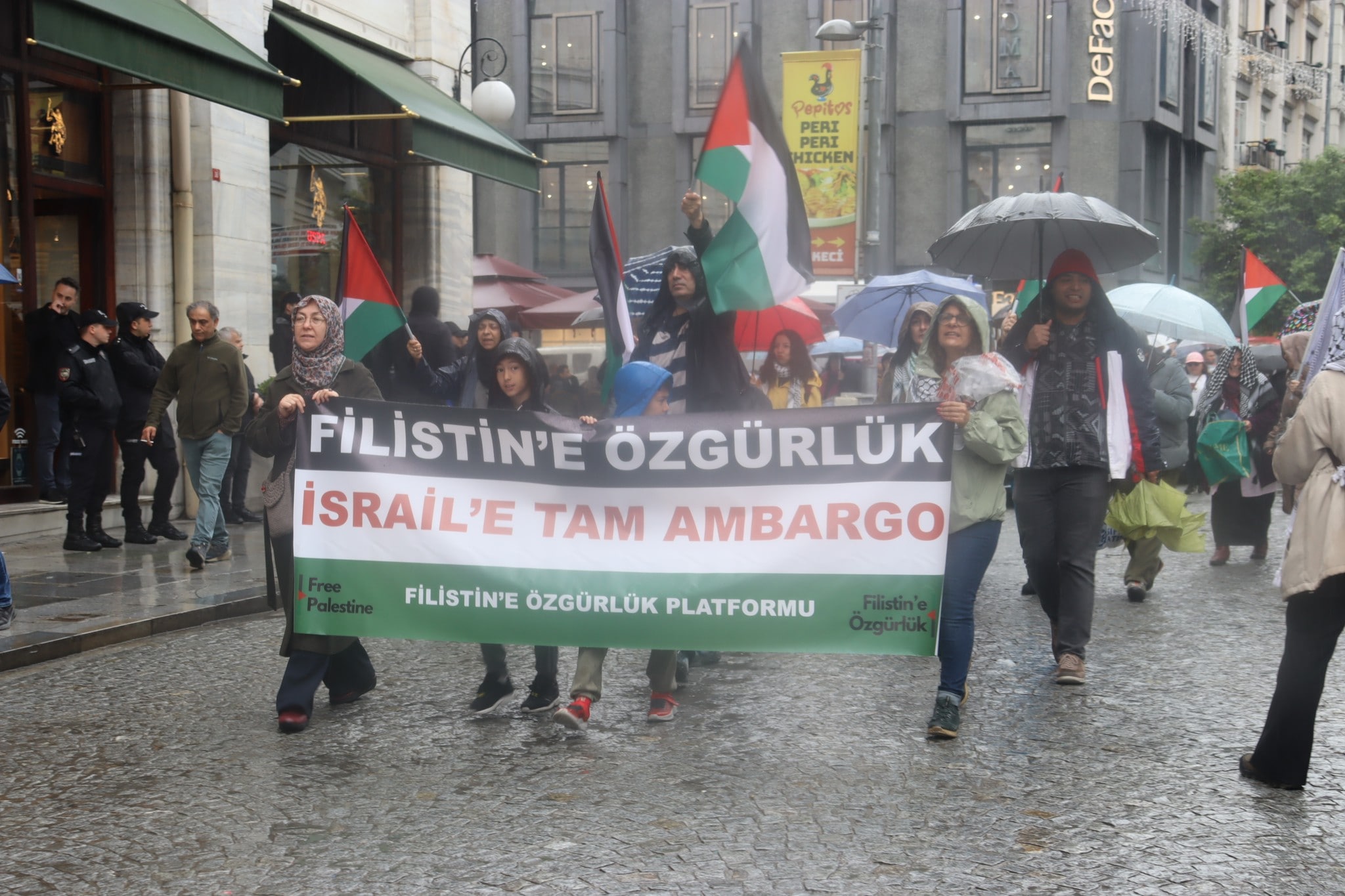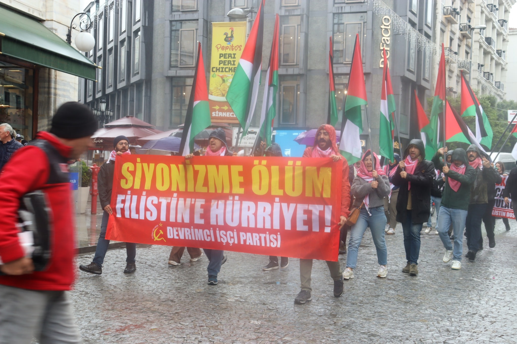 Filistinlilerin şiddet kullanılarak yerlerinden edilmeleri ve mülksüzleştirilmeleri ve toplumlarının, Filistin kültürünün, kimliklerinin, siyasi haklarının ve ulusal isteklerinin yok edilmesi olan Nakba’nın 77. Yıl Dönümü nedeni ile Filistin eylem Komitesi tarafından İstanbul’da düzenlenen yürüyüş Eminönü’nde sonlandı.
