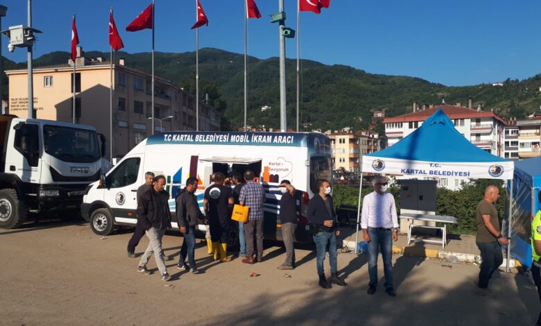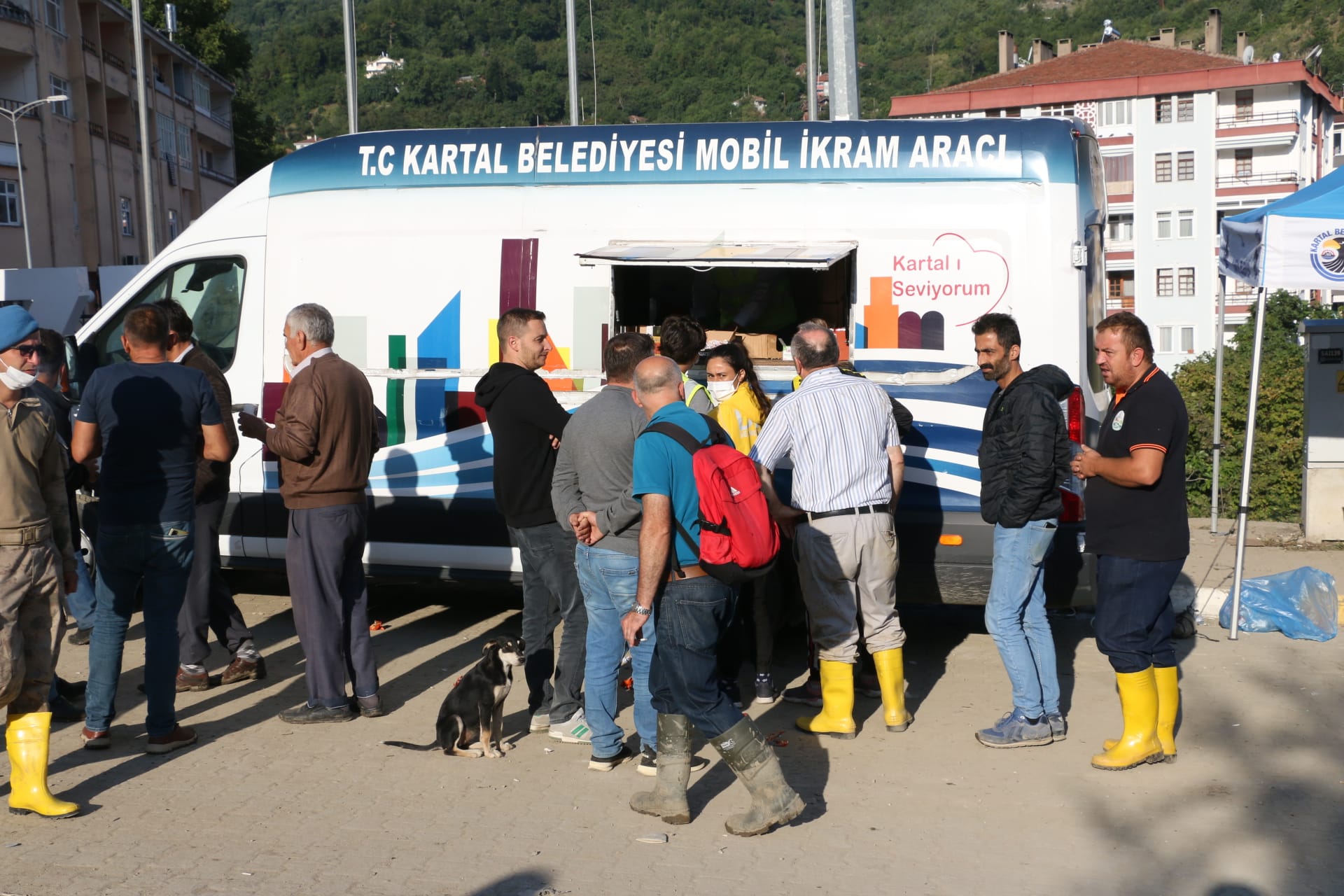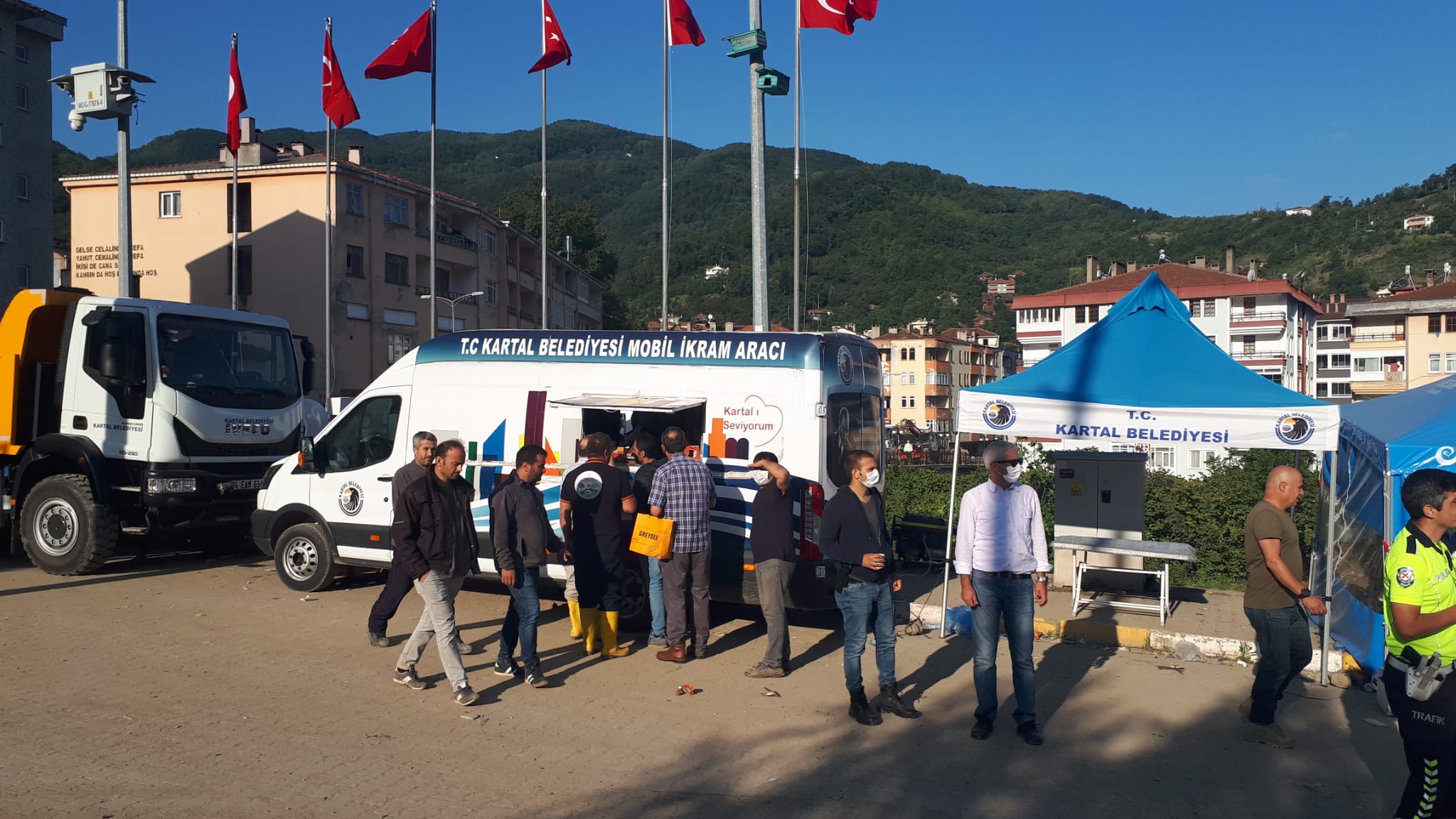 Kartal Belediyesi son yılların en büyük felaketleri ile baş başa kalan ülkemizde bu felaketlerden etkilenen bölgelere yardım eli uzatmaya devam ediyor. Kastamonu Bozkurt, Sinop Ayancık ve Bartın Ulus Düzköy’e yardım kamyonları gönderen Kartal Belediyesi, şimdide felaket sonrası arama kurtarma ve temizlik çalışmalarına destek oluyor. 11 araç ve 23 personelden oluşan ekiple sel felaketine uğrayan ilçelere intikal ederek bölgelerdeki arama, kurtarma ve temizlik çalışmalarına destek olan Kartal Belediyesi, Bozkurt merkeze kurulan mobil ikram aracı ile sel mağdurlarına ikramlarda bulunuluyor.