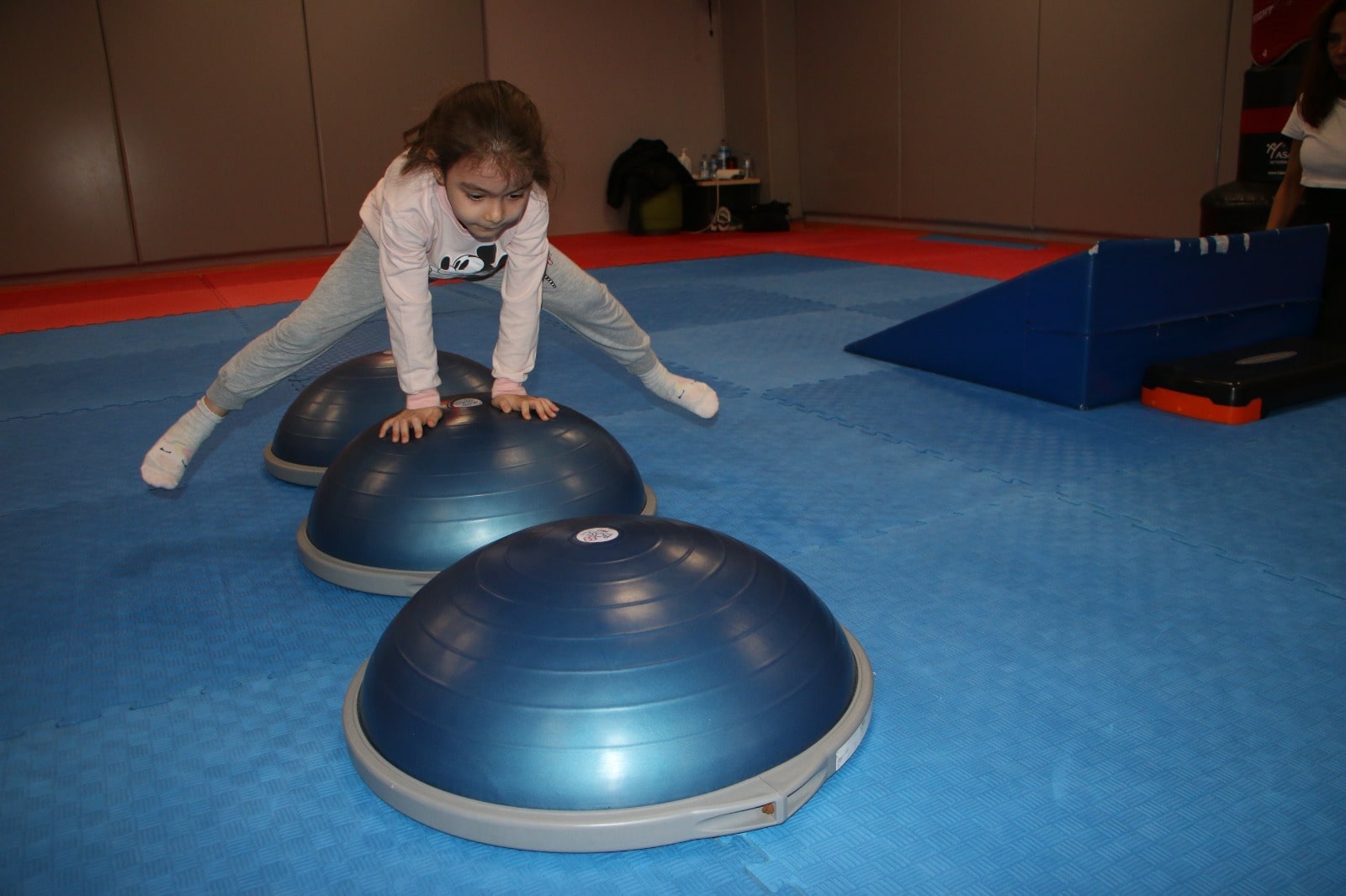 Kendileri için özel hazırlanan cimnastik programı ile sağlıklı yaşam için gerekli olan spora ilk adımlarını atan minikler, sırasıyla eğitmenlerin yönlendirmesi ile kendilerine öğretilen hareketleri gerçekleştiriyor.