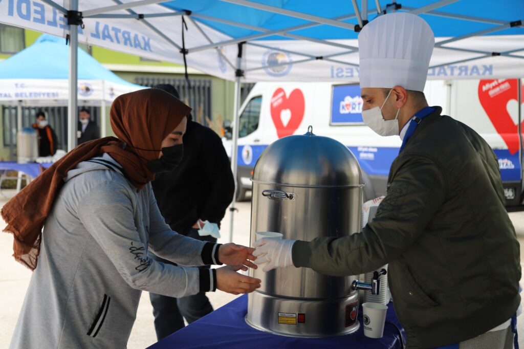 Kartal Belediyesi’nden üniversite öğrencilerine sıcak çorba ve çay ikramı
