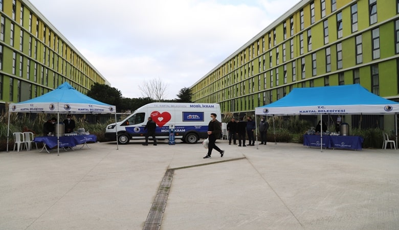 Kartal Belediyesi Sosyal Yardım İşleri Müdürlüğü tarafından Marmara Üniversitesi Kartal Yerleşkesi’nin yurtlarında kalan öğrencilere sıcak çorba, çay ve kahve ikramı yapıldı.