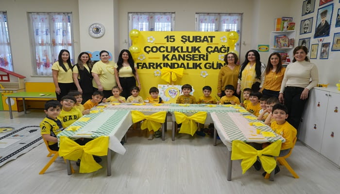 Uluslararası Çocukluk Çağı Kanserleri Günü olan 15 Şubat dolayısıyla düzenlenen programda, çocuklara yönelik farkındalık çalışmaları gerçekleştirildi. Erken evrede teşhis edilen çocukluk kanserlerinin önemine dikkat çekilen etkinlikte, sarı renk teması ön plana çıkarıldı. Çocukluk çağı kanseri farkındalığında sarı rengin umut, iyimserlik ve mutluluğu temsil etmesi nedeniyle etkinlik alanı sarı süslemelerle donatıldı. Minikler de sarı tonlarının ağırlıkta olduğu etkinlik materyalleriyle çalışmalarını gerçekleştirdi. Seramik papatya boyama etkinliği yapan çocuklar hem farkındalık çalışmalarına katıldı, hem de el becerilerine katkı sağladı.