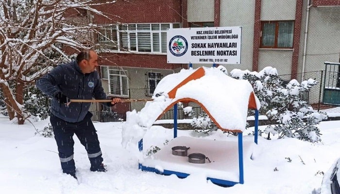 Kdz. Ereğli Belediyesi Veteriner İşleri Müdürlüğü, Kar yağışı nedeniyle yiyecek bulmakta zorlanan sokak hayvanları ve kanatlı hayvanlar için cadde ve sokaklara mama ve yiyecek bıraktı. Belediye Başkanı Halil Posbıyık; “Vatandaşlarımızdan da rica ediyoruz. Lütfen sizlerde kapınızın önüne bir kap mama, su koyarak yardımcı olunuz” dedi.