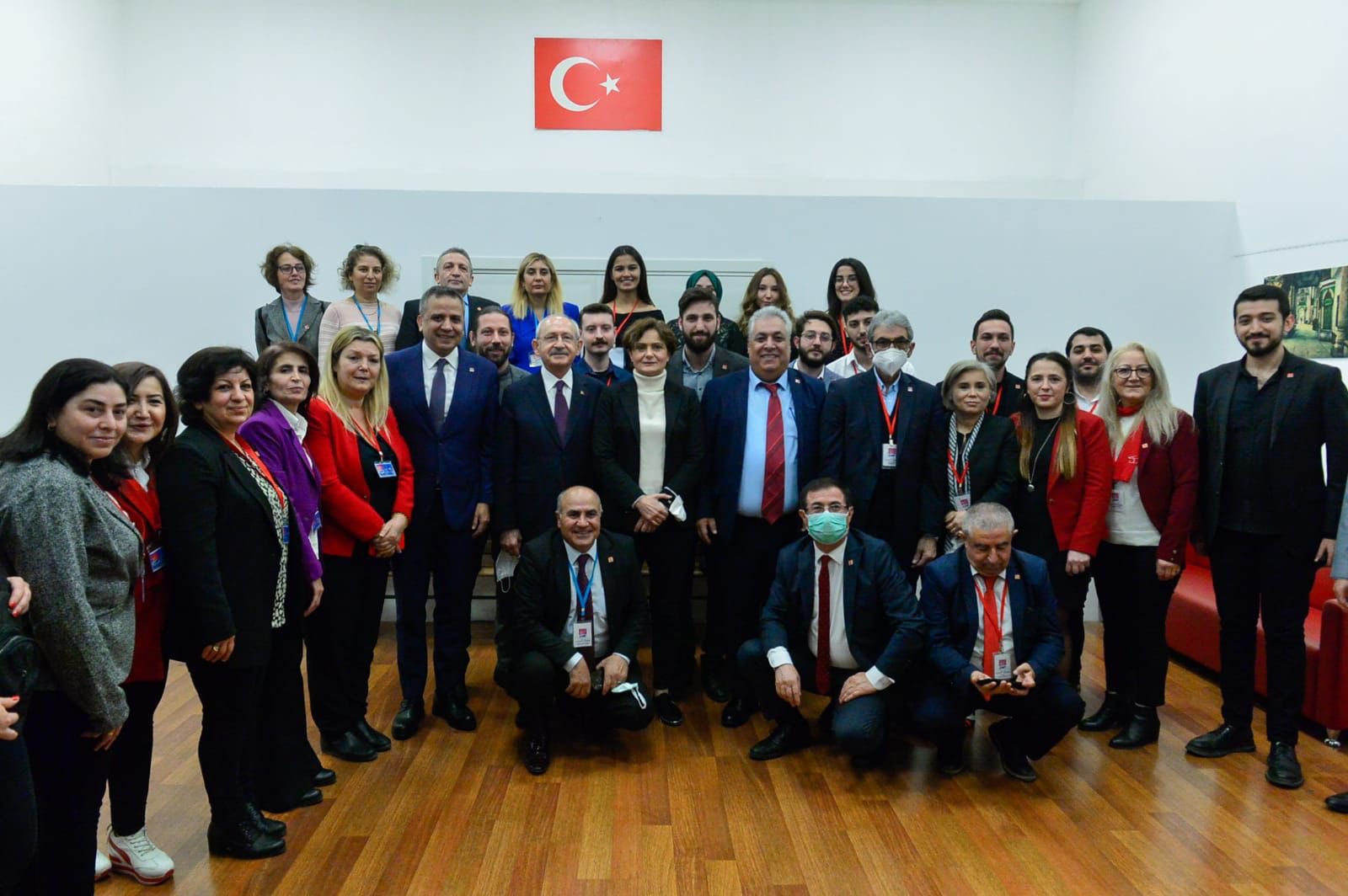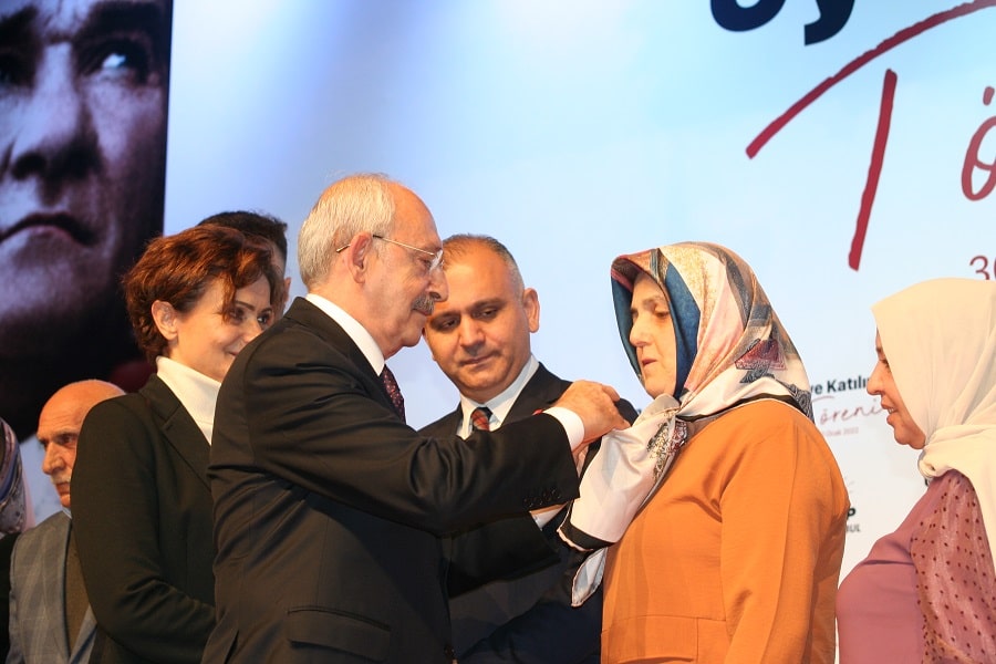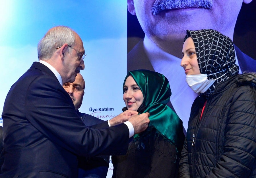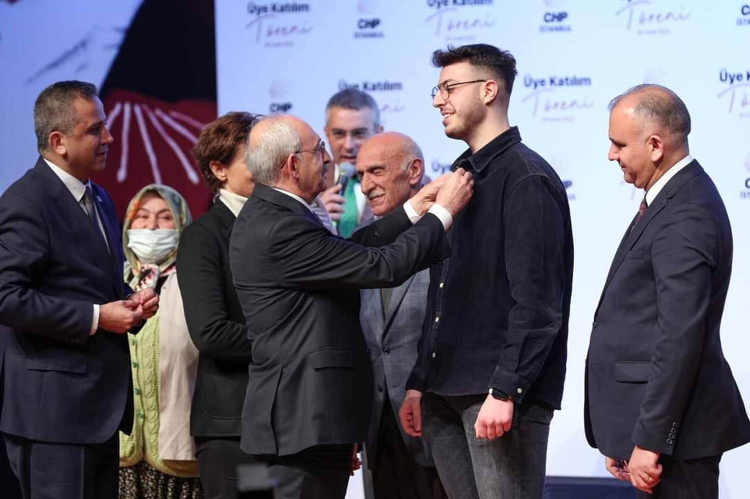 Kılıçdaroğlu, konuşmasının ardından CHP’ye katılan 450 yeni üyeyi temsilen toplam 15 kişiye parti rozetini takarak onlarla hatıra fotoğrafı çektirdi.