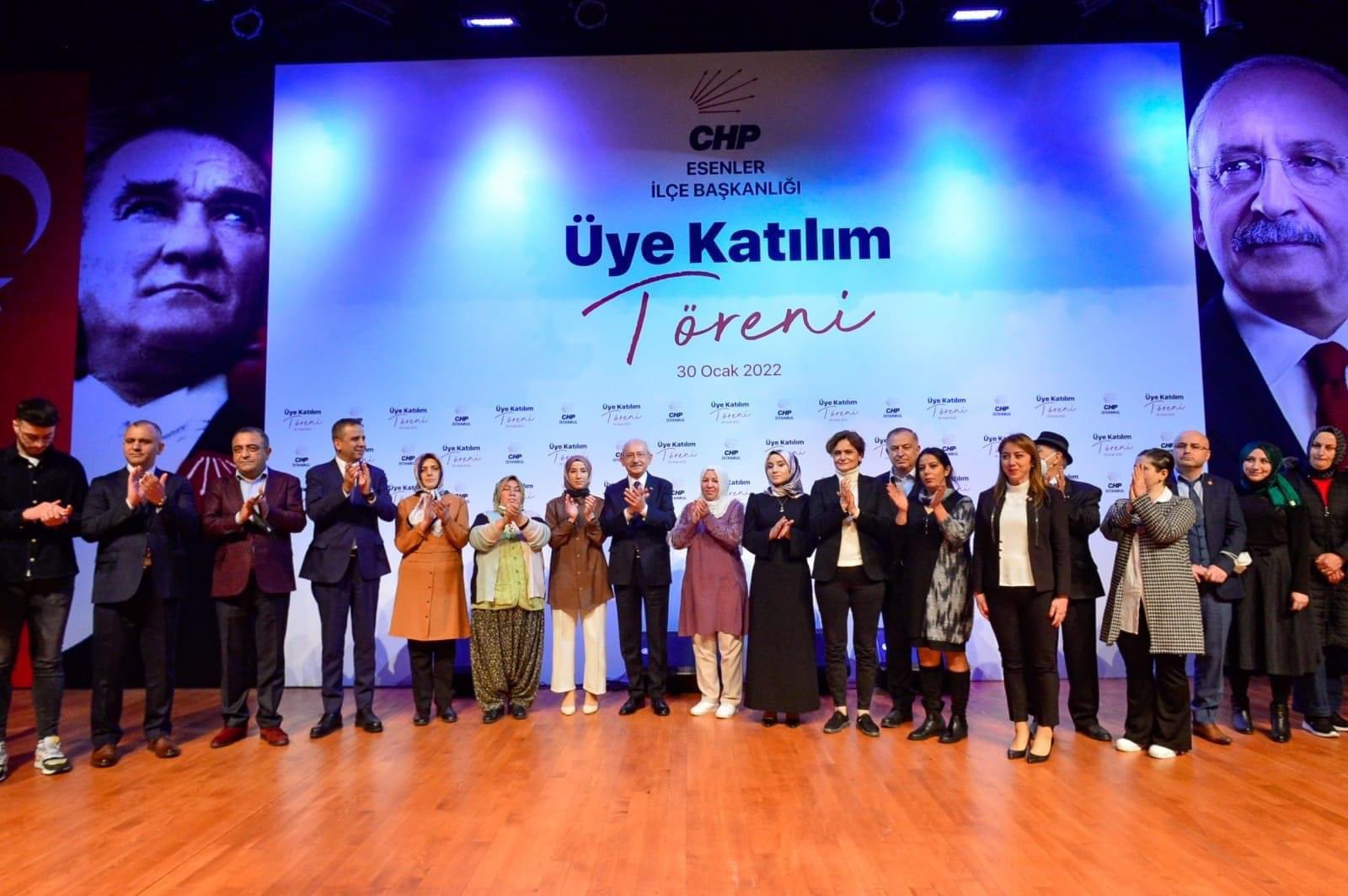 CHP Genel Başkanı Kemal Kılıçdaroğlu, CHP Esenler İlçe Başkanlığı’nın üye katılım törenine katıldı. Kılıçdaroğlu, konuşmasının ardından CHP’ye katılan 450 yeni üyeyi temsilen toplam 15 kişiye parti rozetini takarak onlarla hatıra fotoğrafı çektirdi.