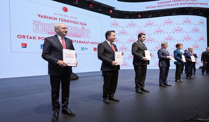 Cumhuriyet Halk Partisi Genel Başkanı Kemal Kılıçdaroğlu, DEVA Partisi Genel Başkanı Ali Babacan, Demokrat Parti Genel Başkanı Gültekin Uysal, Gelecek Partisi Genel Başkanı Ahmet Davutoğlu, İYİ Parti Genel Başkanı Meral Akşener ve Saadet Partisi Genel Başkanı Temel Karamollaoğlu ile birlikte ATO Congresium’da düzenlenen Ortak Politikalar Mutabakat Metni Tanıtım Toplantısına katıldı.