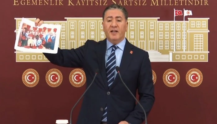 “Cumhurbaşkanlığı iki tane atama yaptı. Birisi Vedat Demiröz, eski milletvekili ve kendisi çok kritik bir göreve atandı, örtülü ödenekten sorumlu danışman olacak. Kim bu Vedat Demiröz? 2012 yılında FETÖ’nün dizinin dibine oturan Vedat Demiröz. FETÖ’nün dizinin dibinde oturduğu sırada MİT krizi de dershaneler krizi de olmuştu ama FETÖ’nün dizinin dibine oturmakta hiçbir sakınca görmeyen Demiröz, şimdi örtülü ödeneğin başında Cumhurbaşkanı’nın başdanışmanı. İşte sizin FETÖ’yle mücadeleniz, sahte FETÖ’yle açtığınız savaş… Siz, FETÖ’yle hep ortaktınız ve ortaklığınızı asla bitiremediniz. FETÖ’yle mücadeleniz yoksul, kimsesiz ve bir şekilde FETÖ terör örgütünün ağına düşmüş insanlar.