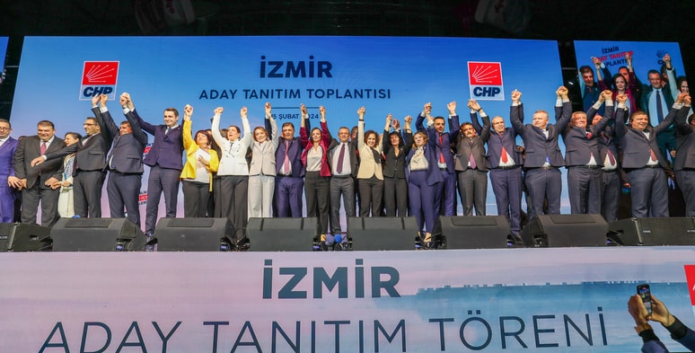 Yerel seçimlerde İzmir’de CHP’nin büyük bir zafer kazanacağını kaydeden Özel, “Şimdi, böyle bir zaferi gerçekleştireceğiz, bunu yaparken biraz önce bir gazeteci arkadaşım geldi, elimi tuttu. Beni hatırladın mı, dedi. Kurultayda fotoğrafımı çekip, demişti ki ‘Sen bu işi başaracaksın. Beni unutma.’ Dedim ‘Tamam.’ Şimdi dedi ki ‘Beni hatırladın mı?’ Nerede o gazeteci ağabeyimiz. Elini kaldırsın göreyim ağabeyimizi. Kurultayda fotoğrafı çekip, ‘Beni unutma’ diyen ve şimdi gelen ağabeyimizin bir elini göreyim. Şimdi geldi, çekti fotoğrafı dedi ki ‘Bak söylüyorum, İzmir’de rekor kırılacak. İzmir’deki bütün belediyeler alınacak…’ Şimdi iki tane, önce bir müjdem ve sonra bir sürprizim var. Müjde şu, adayları gösterdik, 4 gün sonra sahaya indik. Anketlerimizi yaptırdık, yapılan anketlerin sonucunda gördüğümüz o dur ki, aldığımız yol, adayların gördüğü kabul, sahada yarattıkları heyecan, önümüzdeki süreç için bugün belki bir hayal olarak görülen 30’da 30’u müjdeliyor. Size söz veriyoruz. Hiçbir belediyemiz kaybedilme noktasında değil. Kiminde çok açık öndeyiz. Örneğin Karşıyaka. Kiminde açık farkla öndeyiz. Pek çoğunda garanti bir farkla öndeyiz. Ama 4-5 ilçede ciddi şekilde yarışıyoruz. Birkaç puan ya önde ya gerideyiz. CHP şimdiden 24’ü, 25’i gördü. İnanır, kenetlenirseniz, çalışırsanız İzmir’de 30’da 30 yapacağız. Buna inanın ve güvenin. Şimdi güzel günleri müjdeleyen bu güzel gençlere, geleceği müjdeleyen bu güzel çocuklara alkış alayım. Madem bu kadar güzel karşıladınız, coşkulusunuz. Türkiye’nin çok merak ettiği bir şey var. Seçimlerde seçim şarkısı ve seçimlerin tanıtım filmi var. Bugün akşam saat 20.00’de bütün Türkiye’ye görecek ama bu güzel İzmir’e bir sürpriz yapıp, seçim şarkısı ve filmini hep beraber izleyelim mi?” dedi. “İzmir’de harika bir kadro ve müthiş bir takım var” diyen Genel Başkan Özgür Özel, aday tanıtım toplantısındaki konuşmasını şöyle sürdürdü: