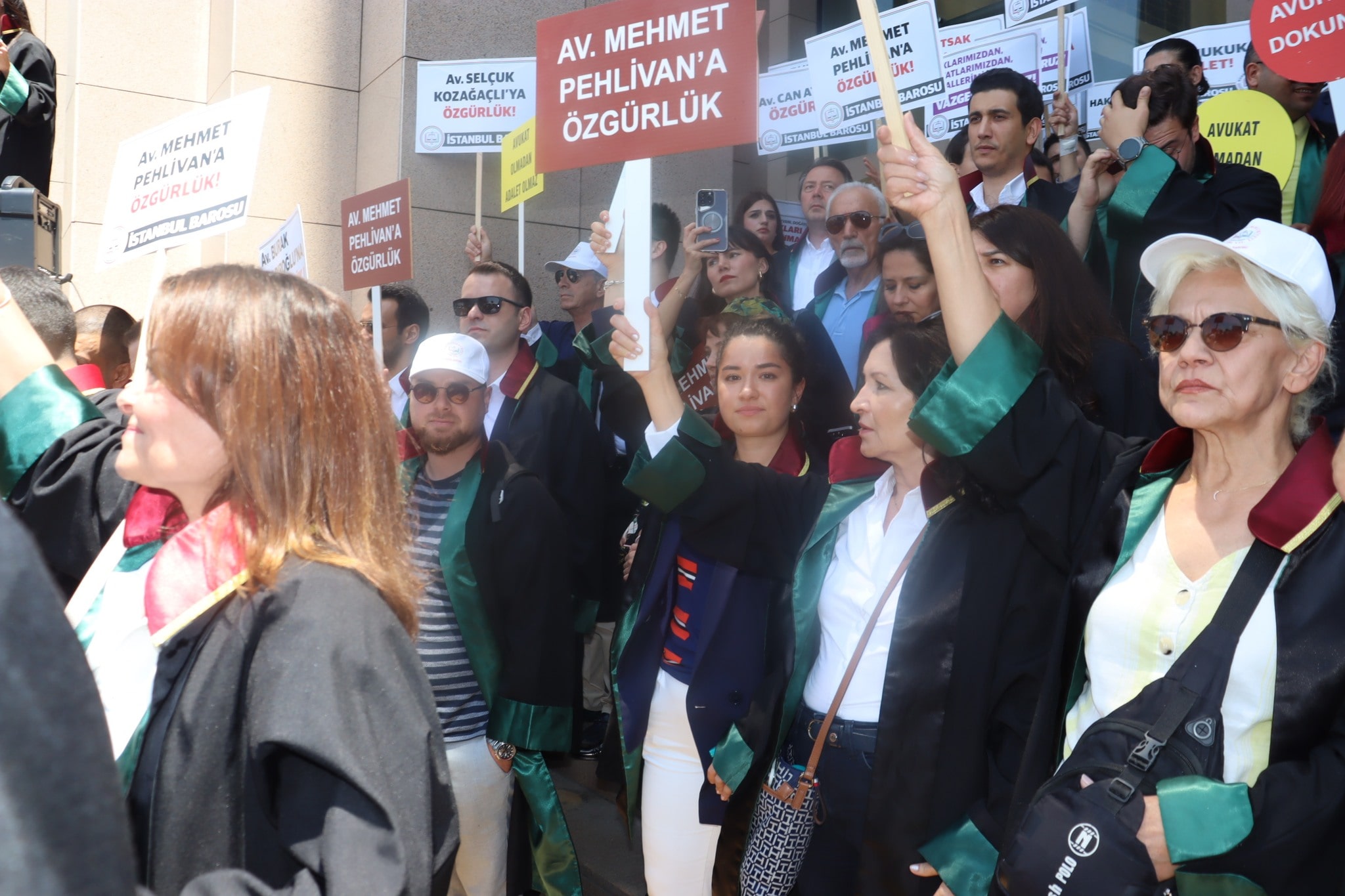 Silivri’deki Marmara Cezaevi’nde tutuklu bulunan İBB Başkanı Ekrem İmamoğlu’nun avukatı Mehmet Pehlivan’ın tutuklanmasını meslektaşları protesto etti.