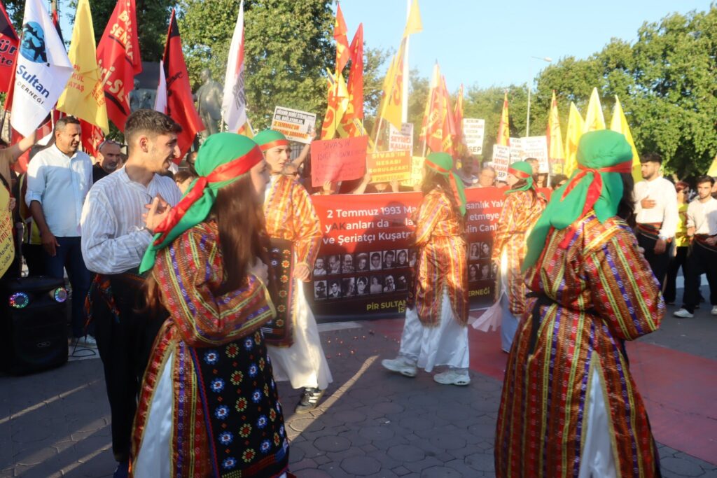 2 Temmuz 1993 tarihinde Sivas’ta düzenlenen Pir Sultan Abdal Şenlikleri sırasında Madımak Oteli’nin radikal İslamcı bir grup tarafından yakılması ve çoğunluğu Alevi 33 yazar, ozan, düşünür ile 2 otel çalışanının yanarak ya da dumandan boğularak ölümü ile sonuçlanan olaylarının 32. yıl dönümü nedeni ile Pir Sultan Abdal Kültür Derneği İstanbul Şubeleri 24 Haziran 2025 Salı günü Kadıköy İskele Meydanında anma programı kaybedilen 33 can için yapılan saygı duruşu ile başlarken yapılan basın açıklaması sonrası Sivas Semah ekibi gösterimi yapıldı.