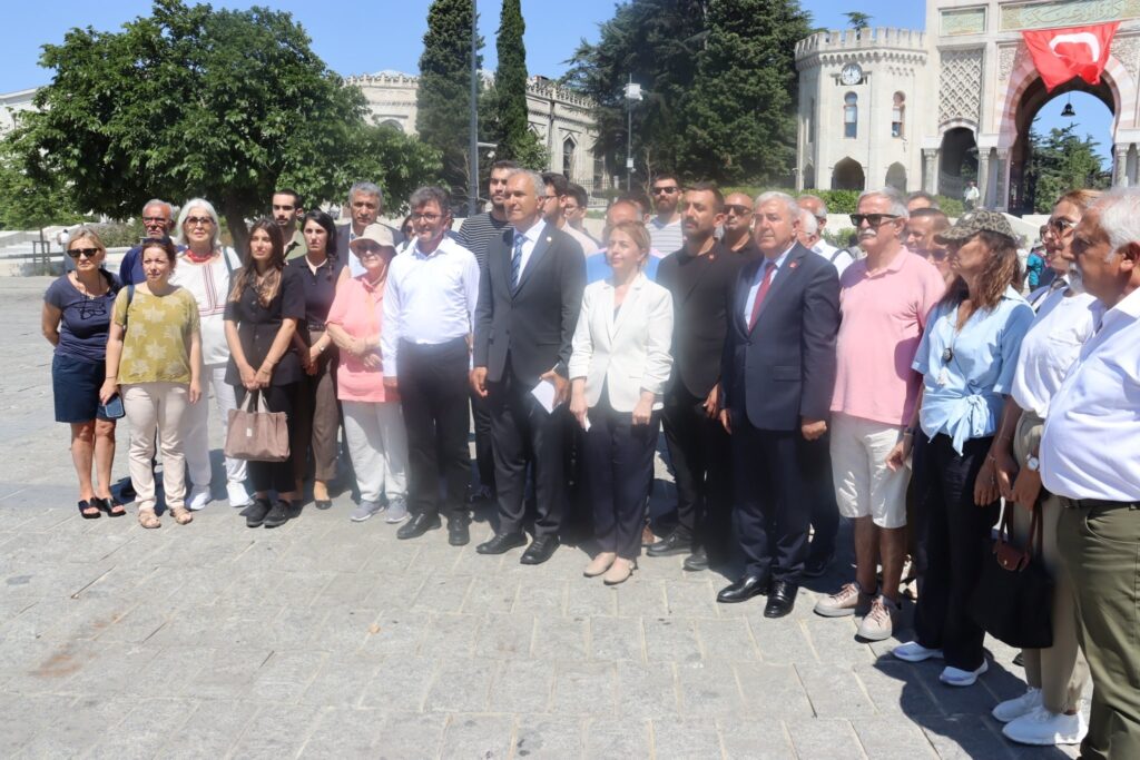CHP Genel Başkan Yardımcısı Suat Özçağdaş, İzmir Milletvekili Prof. Dr. Yüksel Taşkın ve Prof. Dr. Armağan Erdoğan ile sahte e-imza üreterek yüzlerce sahte üniversite diploması alındığı iddialarıyla ilgili yürütülen soruşturmaya ilişkin, İstanbul Üniversitesi önünde basın açıklaması yaptı.