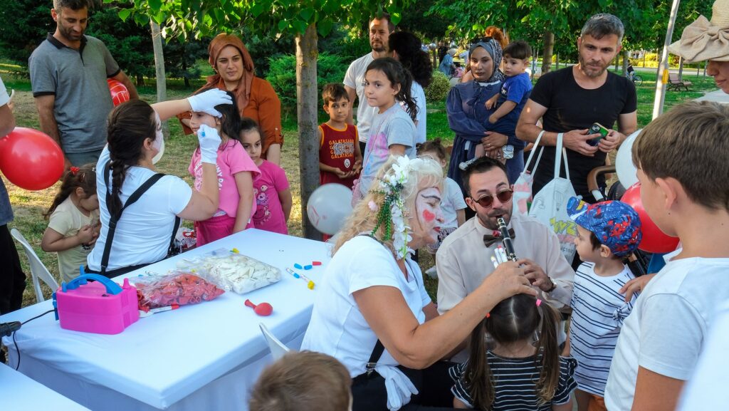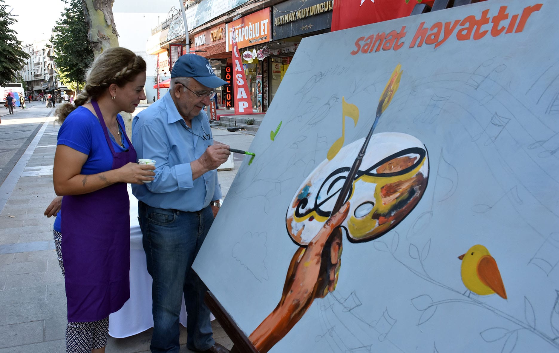 Sanatı, herkesin dokunabildiği ve hissedebildiği bir deneyime dönüştüren “Sokakta Sanat Var” etkinliğinde; meydanlarda yankılanan ezgiler, caddelerde hayat bulan dans adımları ve sokakları renklendiren fırça darbeleriyle bu eşsiz dokunuş, ilçenin dört bir yanına yayıldı. Rengarenk sokaklarda piyano çalan küçük sanatçılar, izleyenlerin kalplerine dokunan melodiler sunarken; yüz boyama, resim, müzik, el sanatları ve çocuk atölyeleriyle zenginleşen programda, her yaştan katılımcı sanatla iç içe olmanın coşkusunu yaşadı.