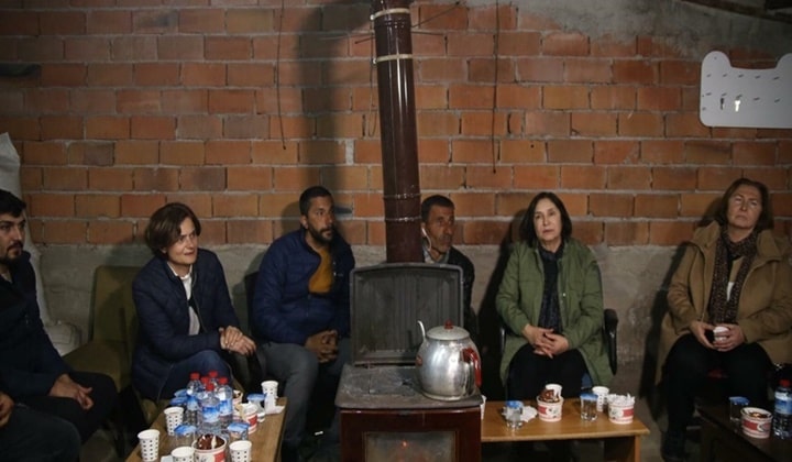 Depremde 12 yakınını kaybeden Çöplü Ailesi’ne taziye ziyaretinde bulunan Selvi Kılıçdaroğlu ve Canan Kaftancıoğlu, aileye başsağlığı ve geçmiş olsun dileklerini iletti. Kaftancıoğlu, “Bir depremzede, ‘Ben, yaşadığım depremin o anki korkusunu belki unutabilirim ama depremden sonra bize yaşatılan 3 günü, o soğuğu, o çaresizliği unutmam asla mümkün değil’ dedi. Burada kayıpların üzerine, acıların üzerine bir de o yaşatılan, herkesin kendi başının çaresine bakmak zorunda olduğu 4 gün yaşandı. Özgür Özel vekilimiz bu bölgeye gelinceye kadar hiç kimse bu bölgeden haberdar değilmiş” dedi. Selvi Kılıçdaroğlu ise deprem sonrasında arama-kurtarma faaliyetlerinin iyi koordine edilemediğini belirterek, “İnsanlara yazık oldu. Çok kişi hayatta olabilirdi” diye konuştu.