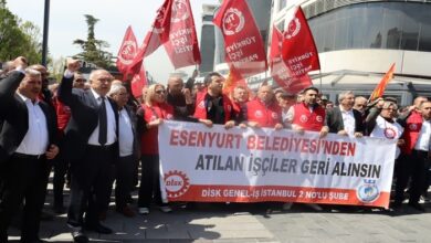 Esenyurt Belediyesi kayyumu tarafından tek taraflı, haksız, hukuksuz şekilde iş akitleri feshedilen işçilerin işlerine geri alınması için DİSK Genel İş…