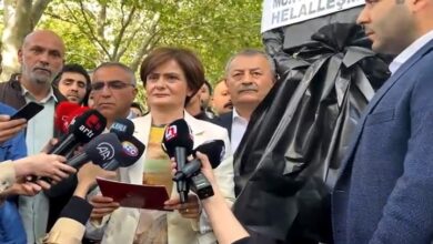 Kaftancıoğlu’nun AKP binasına “Montajcı sahtekarlarla helalleşmeyeceğiz” yazılı siyah çelenk bırakmasına polis engeli