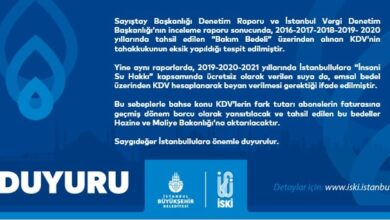 İstanbul Su ve Kanalizasyon İdaresi (İSKİ), Sayıştay Başkanlığı Denetim Raporu ve İstanbul Vergi Denetim Başkanlığı’nın inceleme raporu doğrultusunda, “Bakım Bedeli”…