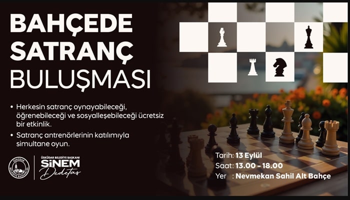 Üsküdar Belediyesi, satranç everleri özel bir etkinlikte buluşturuyor. “Bahçede Satranç Buluşması”, 13 Eylül’de Nevmekan Sahil Alt Bahçe’de gerçekleşecek.