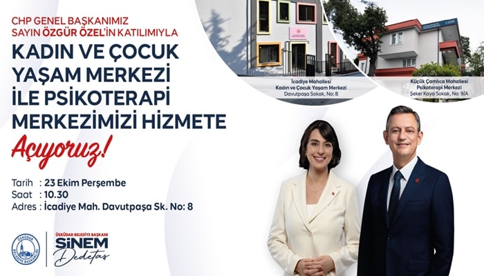 Cumhuriyet Halk Partisi (CHP) Genel Başkanı Sayın Özgür Özel ile Üsküdar Belediye Başkanı Sinem Dedetaş tarafından açılışı gerçekleştirilecek açılış töreni, 23 Ekim Perşembe günü saat 10.30’da İcadiye Mahallesi Davutpaşa Sokak’ta yapılacak.