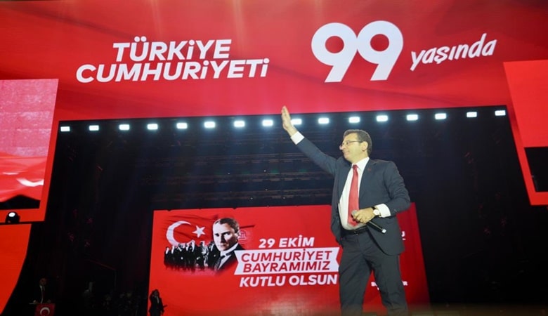 “Cumhuriyet’in ikinci yüzyılına girerken, hep birlikte, yeni ve büyük bir adım daha atmaya hazırlanıyoruz” diyen İmamoğlu, “Hedefimiz belli; Cumhuriyet’in ilke ve değerleri üzerinde yükselen, demokratik ve güçlü bir devlet olacağız. Hep birlikte olacağız. Huzurlu ve zengin bir toplum inşa edeceğiz. Ve bu topraklarda yaşayan herkes hem kanunlar önünde hem gerçek hayatta, eşit ve özgür yurttaşlar olacak. 99 yıl önce çıktığımız yolculuğun, yeni ve umut dolu bir safhasındayız. Hep birlikte yeni bir başlangıcın aşamasındayız. Türkiye’nin kaderini, Cumhuriyet’in bu ülke için değerini bilen milyonlar belirleyecek. Sizler belirleyeceksiniz. Buradaki hanımefendiler, beyefendiler, sevgili gençler, hatta siz çocuklar; sizler belirleyeceksiniz. Milli iradeyi hiçe saymak, adil rekabete dayalı ve çoğulcu bir siyaseti ortadan kaldırmak hevesi taşıyan bir avuç insan, haddini bilecek haddini” şeklinde konuştu. Cumhuriyet’i, yöneticilerin haddini bildiği bir rejim olarak tanımlayan İmamoğlu, “Seçilmiş olsun ya da atanmış olsun, hiç fark etmez. Bu rejimde hiçbir yönetici, yani bizler, kendisini bu şehrin ya da bu ülkenin sahibi asla göremez. Görürse, Cumhuriyet’in eşit ve onurlu yurttaşları ne yapar biliyor musunuz? Gereğini yapar ve yollar. Milletin iradesi, en güzel ve en doğru dersi verir” dedi.