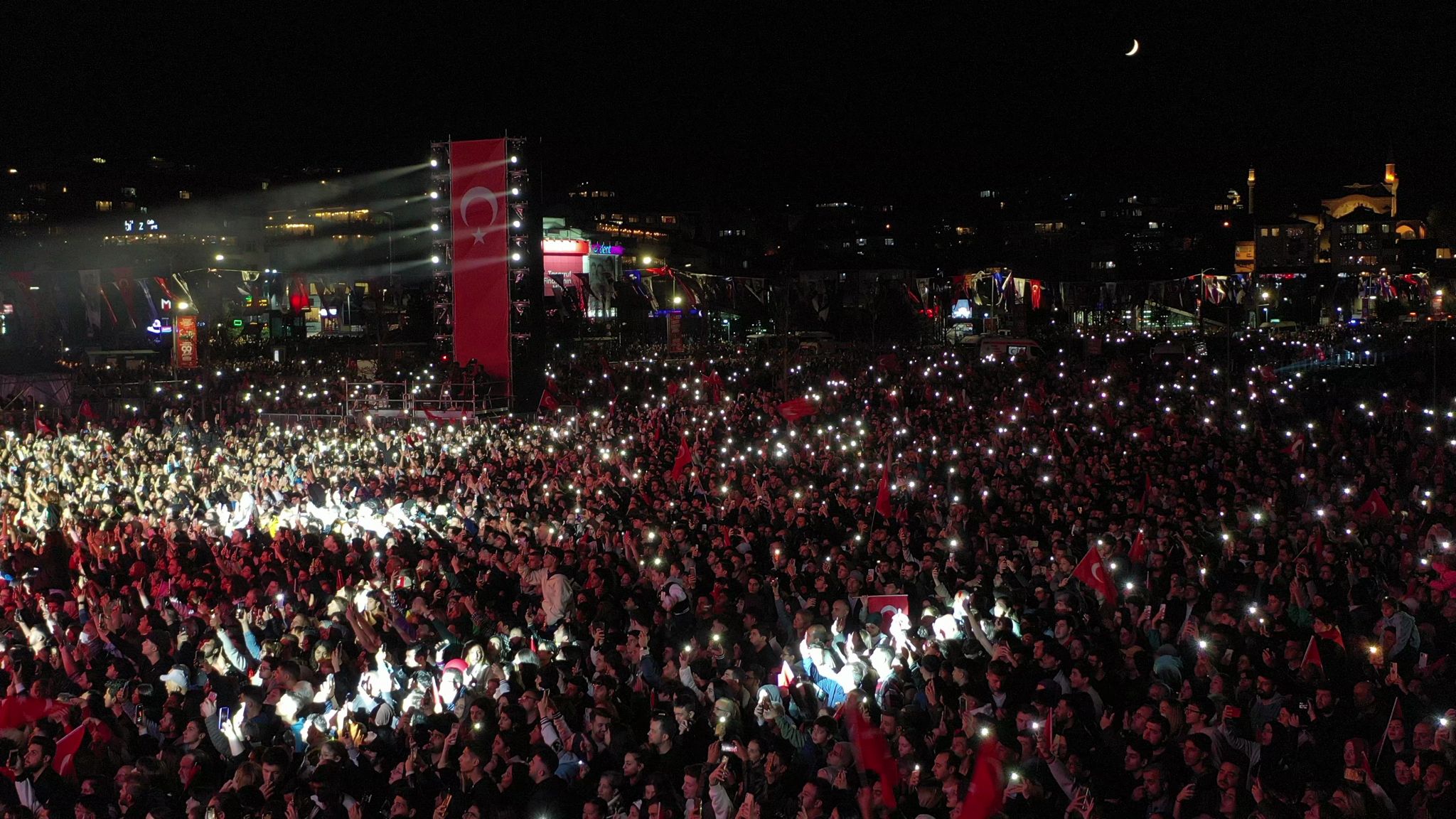 İmamoğlu’nun konuşmasının ardından gerçekleştirilen mapping ve ışık gösterisi, İstanbul Boğazı semalarında görsel bir şölen oluşturdu. Etkinlik, usta sanatçı Selda Bağcan’ın verdiği, katılımcıların hep bir ağızdan seslendirdiği türküler ve şarkılarla sona erdi.