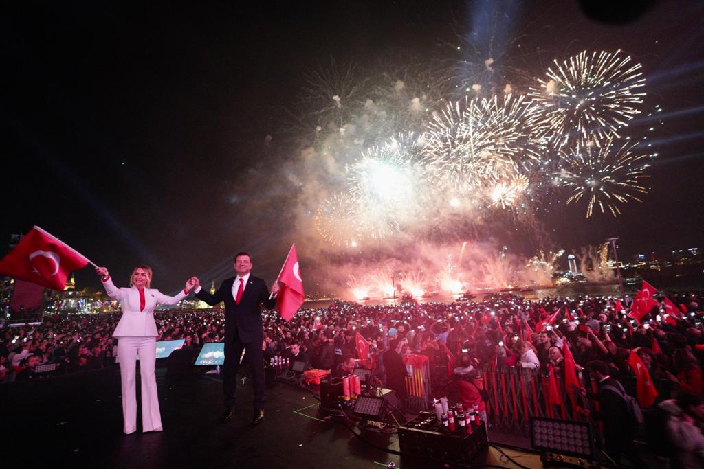 İstanbul Büyükşehir Belediyesi (İBB), Türkiye Cumhuriyeti’nin 99’uncu kuruluş yıldönümünü, kentin sembol mekanlarından Üsküdar sahilinde kutladı. Saat 19.00 itibarıyla başlayan ve vatandaşların yoğun ilgi gösterdiği ve alanı hınca hınç doldurduğu kutlamalar, DJ performansı ile başladı. Bege konseri ile devam eden coşku, Anadolu Ateşi’nin muhteşem gösterisiyle sürdü. İBB Başkanı Ekrem İmamoğlu da eşi Dilek İmamoğlu ile birlikte vatandaşların Üsküdar’daki Cumhuriyet coşkusuna ortak oldu. Vatandaşların arasında etkinlik alanına giren İmamoğlu çiftinin, kıyafetlerinde kırmızı-beyaz renkleri seçmesi dikkat çekti. Vatandaşlar, İmamoğlu’na sevgilerini, “Ekrem Başkan” tezahüratıyla gösterdi. Saygı duruşunda bulunulması ve İstiklal Marşı’nın okunmasının ardından mikrofona gelen İmamoğlu, çoğunluğu gençlerden oluşan vatandaşlara bir konuşma yaptı.